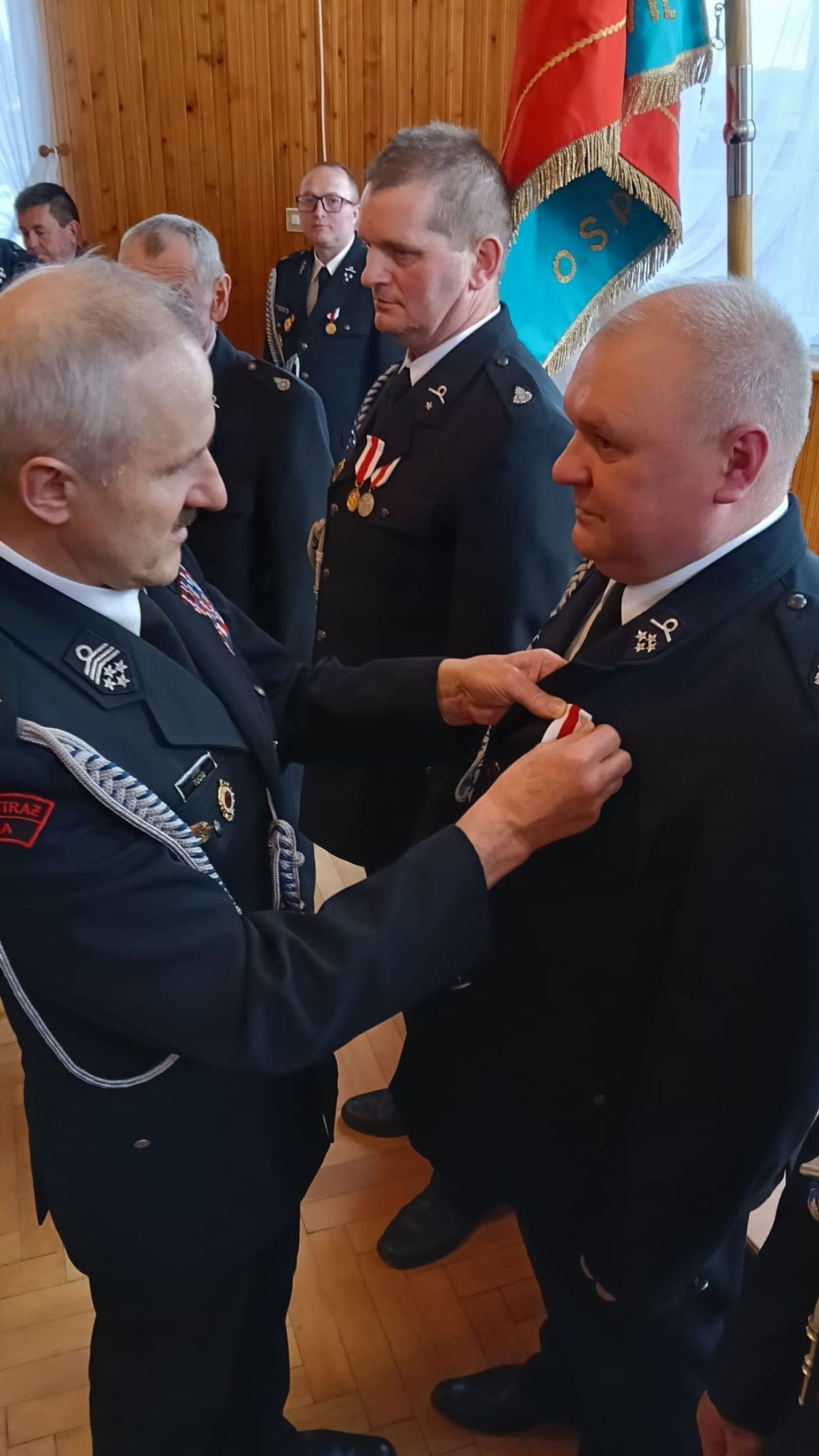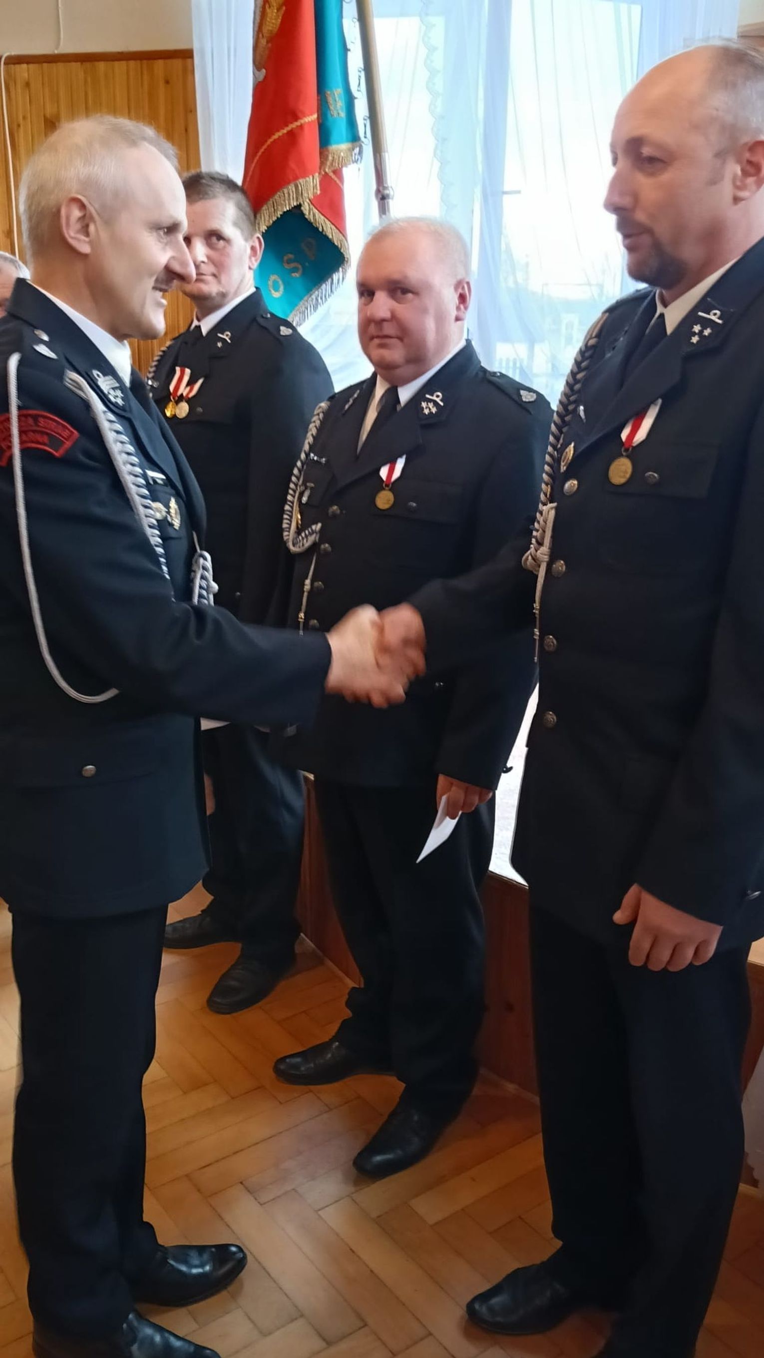 Medale wręczył Prezes Oddziału Powiatowego ZOSP RP w Krośnie dh Józef Tucki w asyście prezesa oddziału gminnego dh Grzegorza Zawady oraz burmistrza gminy Rymanów Grzegorza Wołczańskiego.