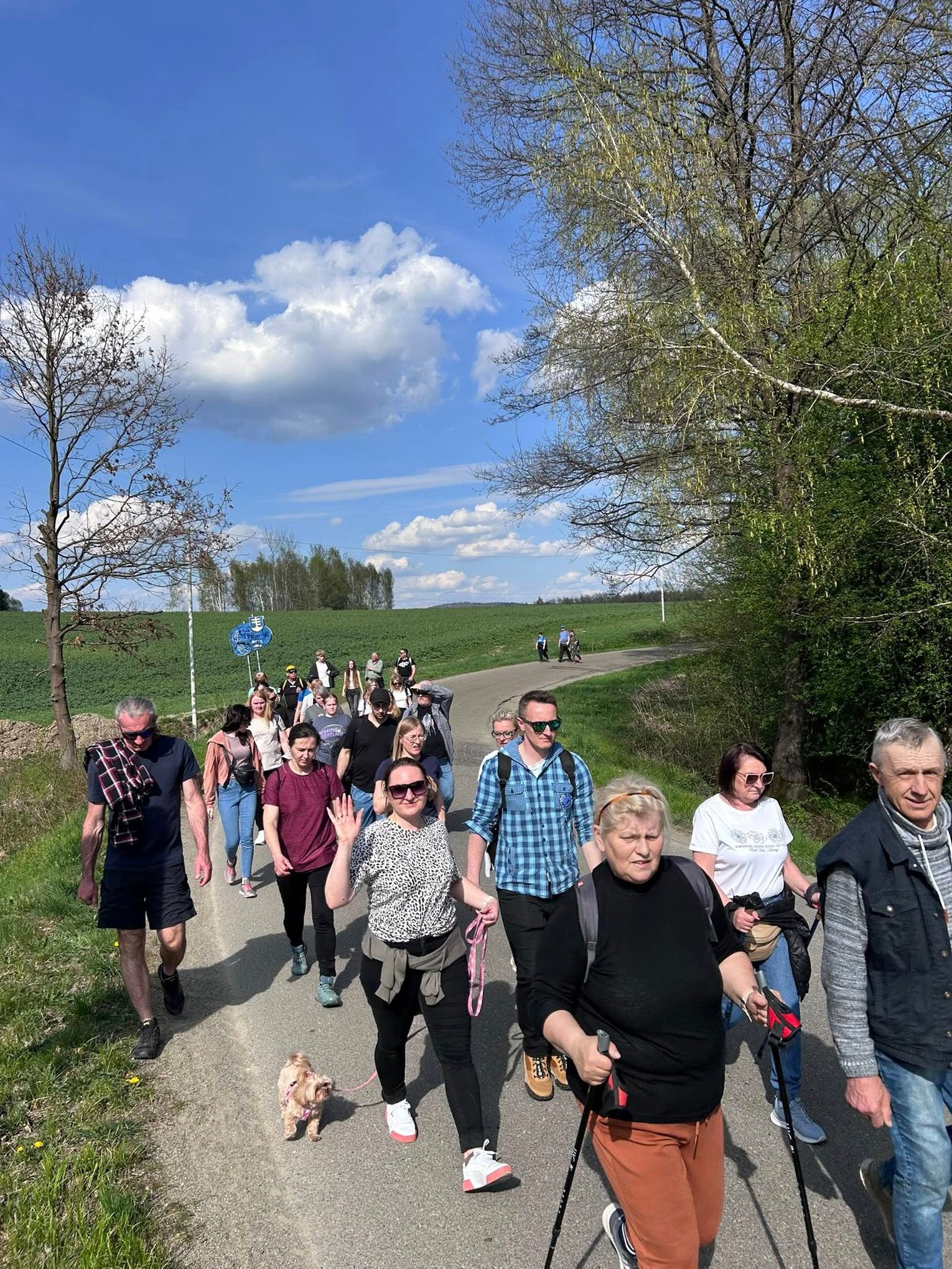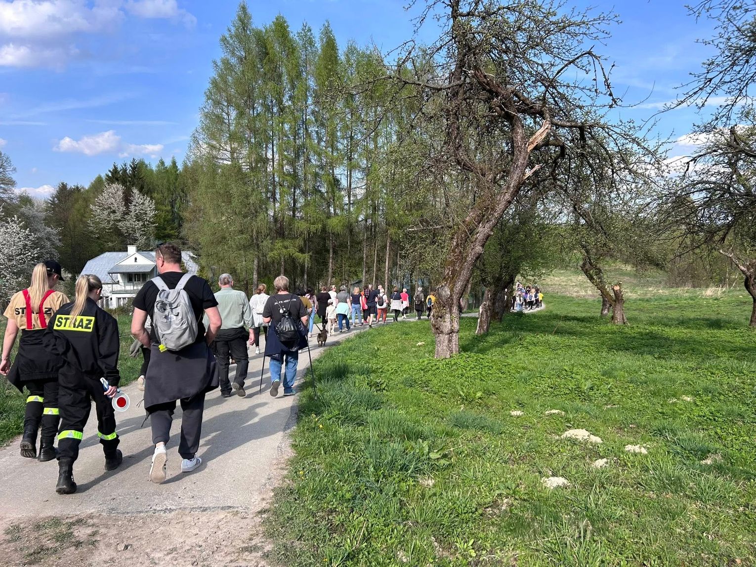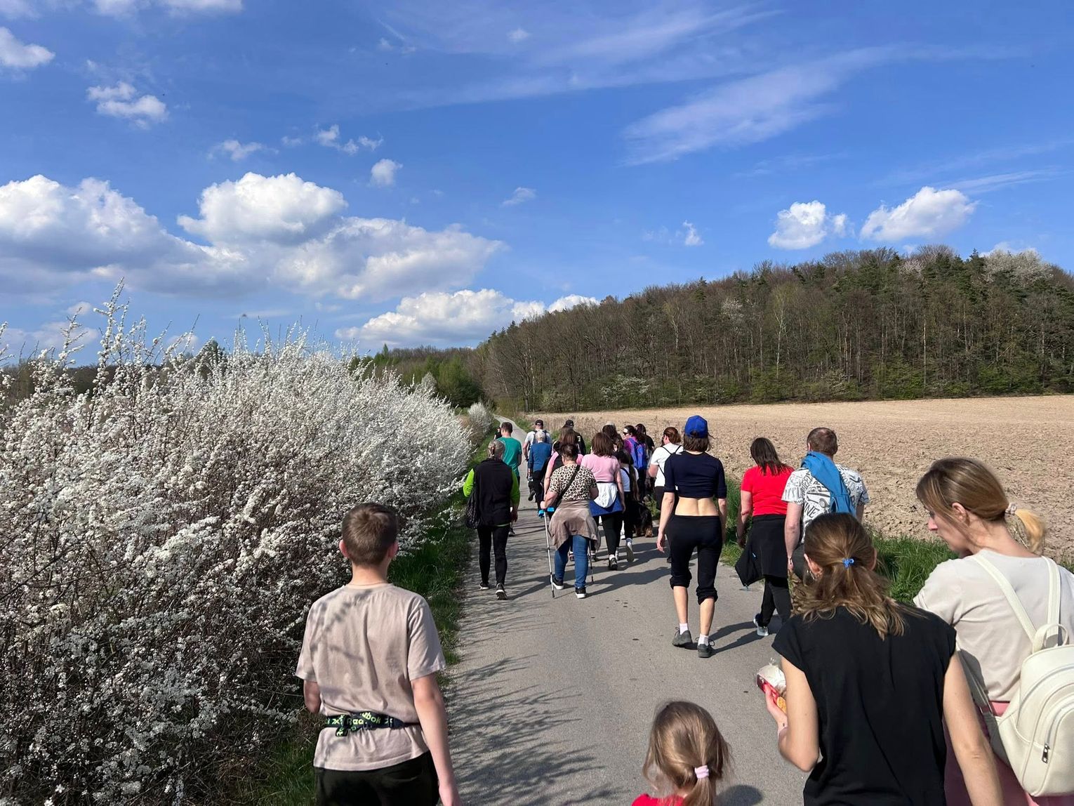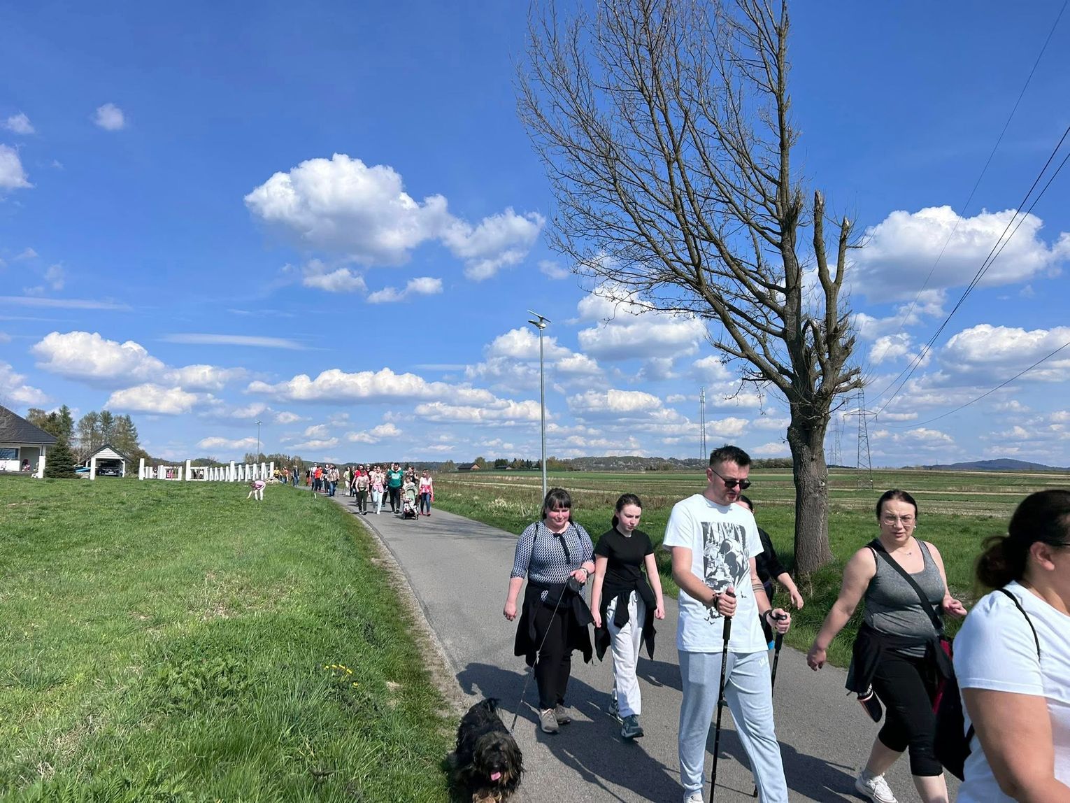 Uczestnicy pokonali blisko dziesięciokilometrową trasę, prowadzącą przez malownicze okolice. Wiosenna przyroda prezentowała się w pełnej krasie – kwitnące drzewa, soczysta zieleń traw, młode liście i śpiew ptaków tworzyły wyjątkową scenerię. Spacerowicze mogli na chwilę zwolnić tempo codzienności, nacieszyć się naturą i dostrzec piękno budzącej się do życia przyrody.