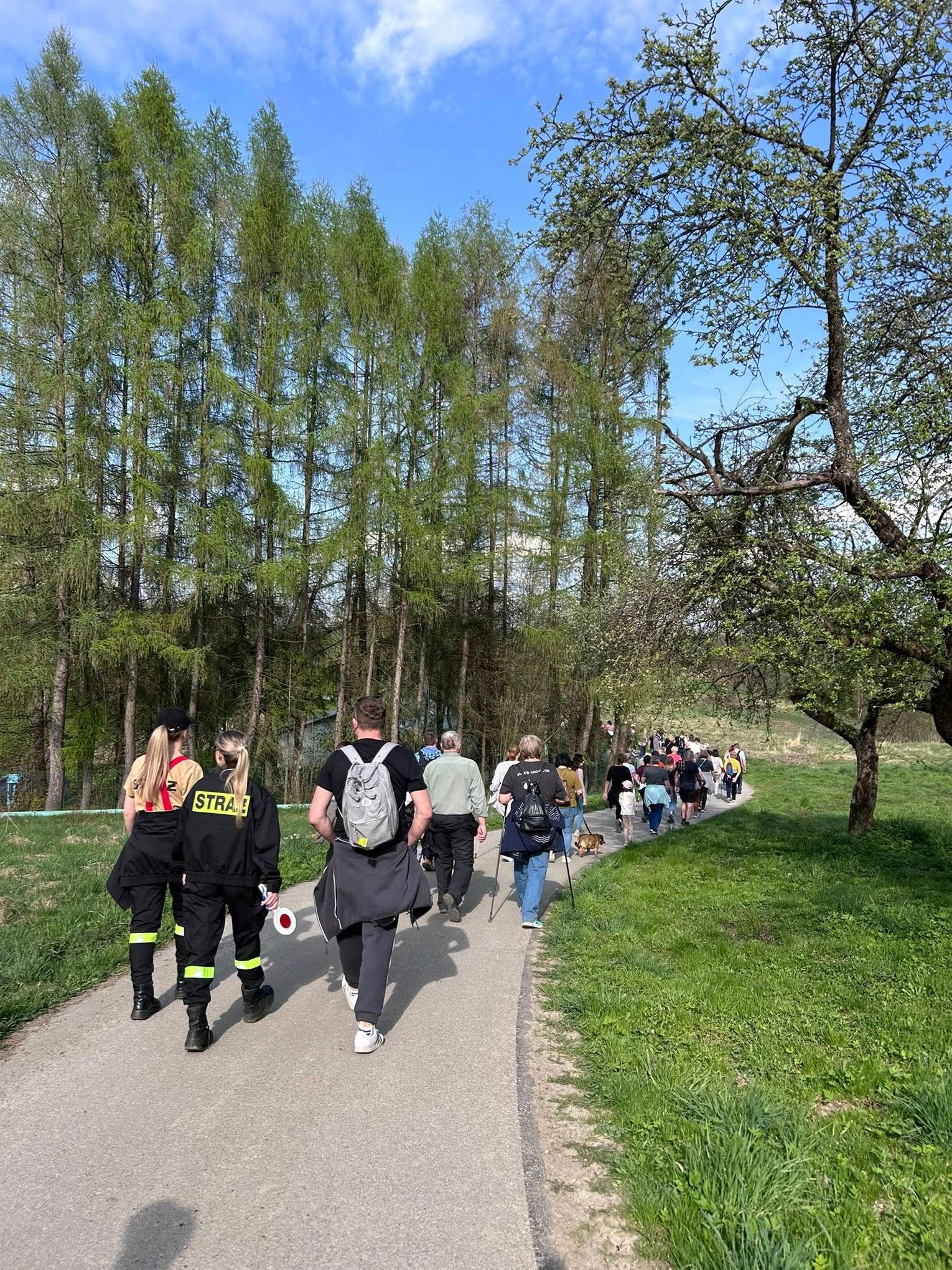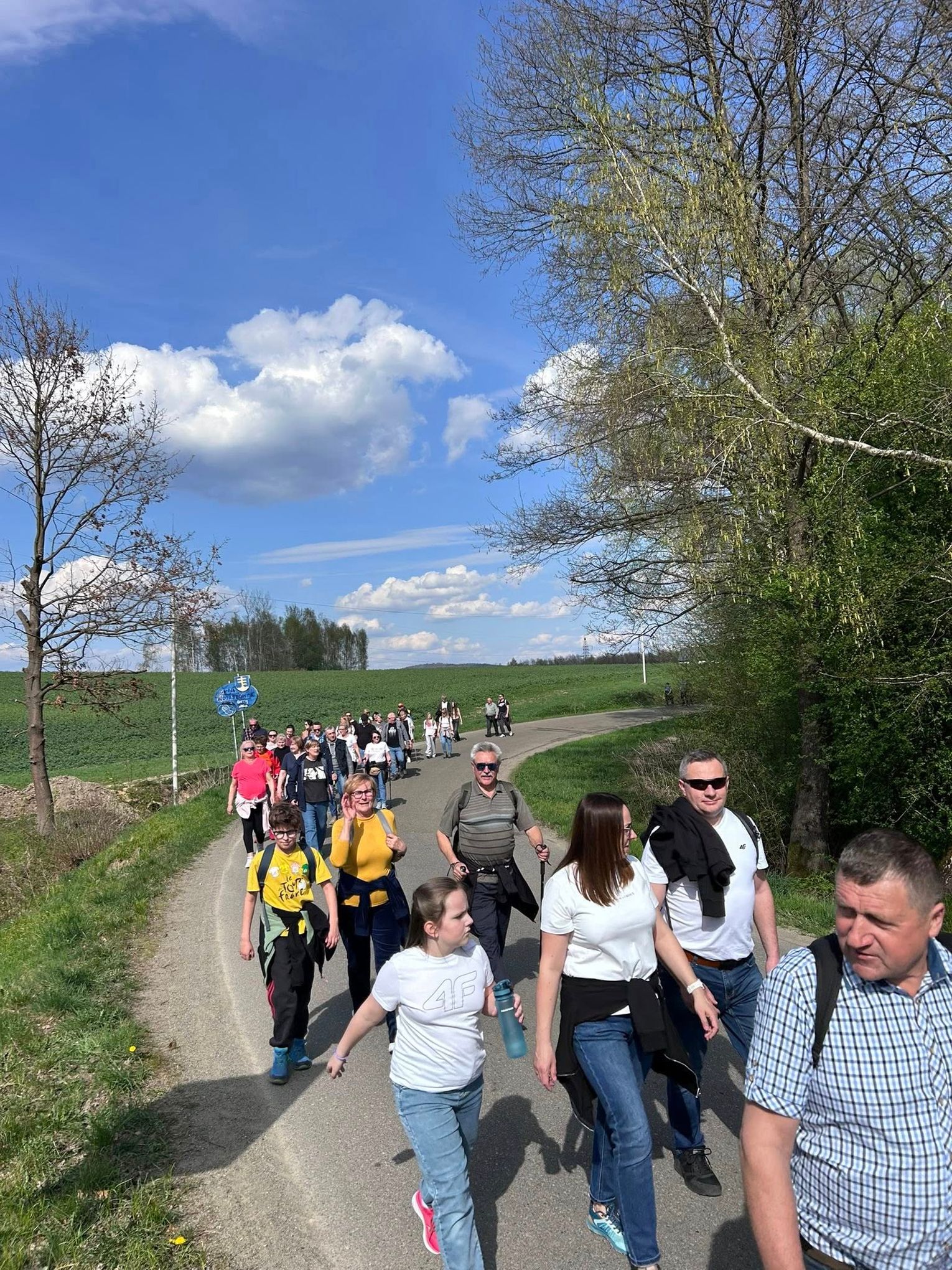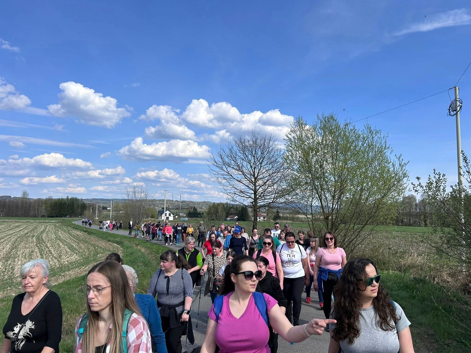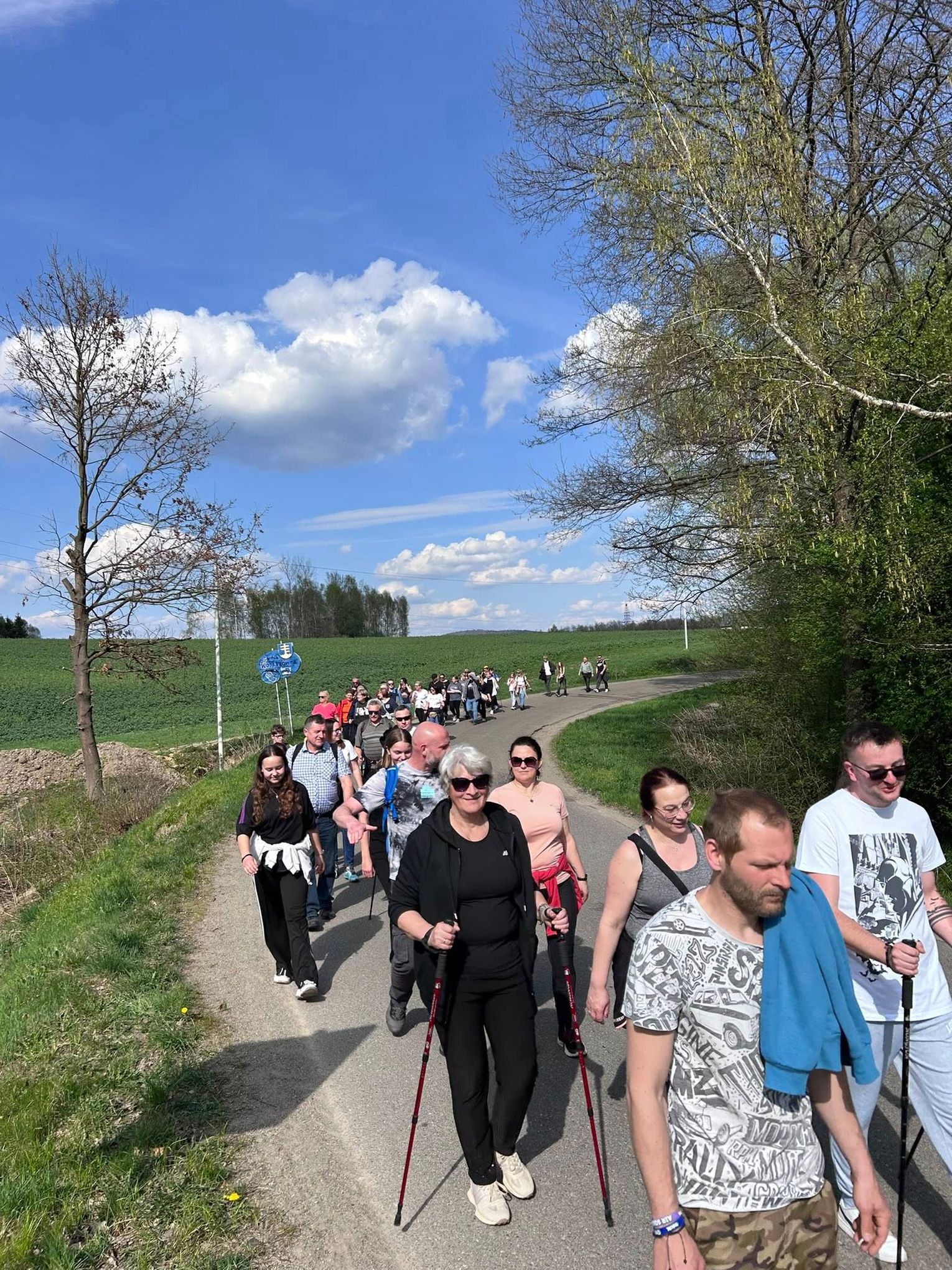 Uczestnicy pokonali blisko dziesięciokilometrową trasę, prowadzącą przez malownicze okolice. Wiosenna przyroda prezentowała się w pełnej krasie – kwitnące drzewa, soczysta zieleń traw, młode liście i śpiew ptaków tworzyły wyjątkową scenerię. Spacerowicze mogli na chwilę zwolnić tempo codzienności, nacieszyć się naturą i dostrzec piękno budzącej się do życia przyrody.
