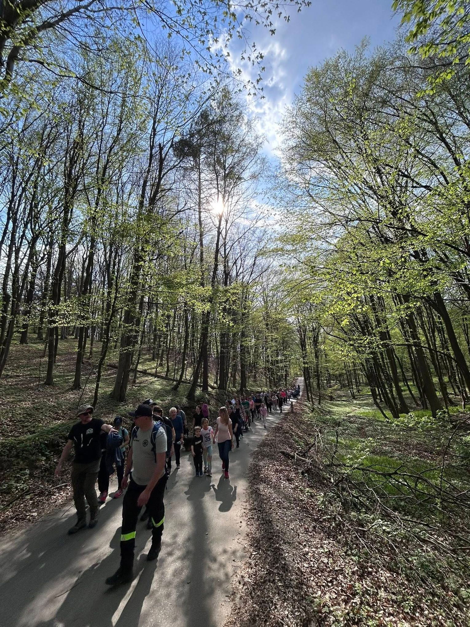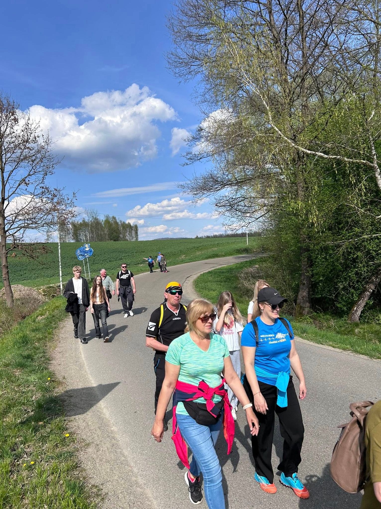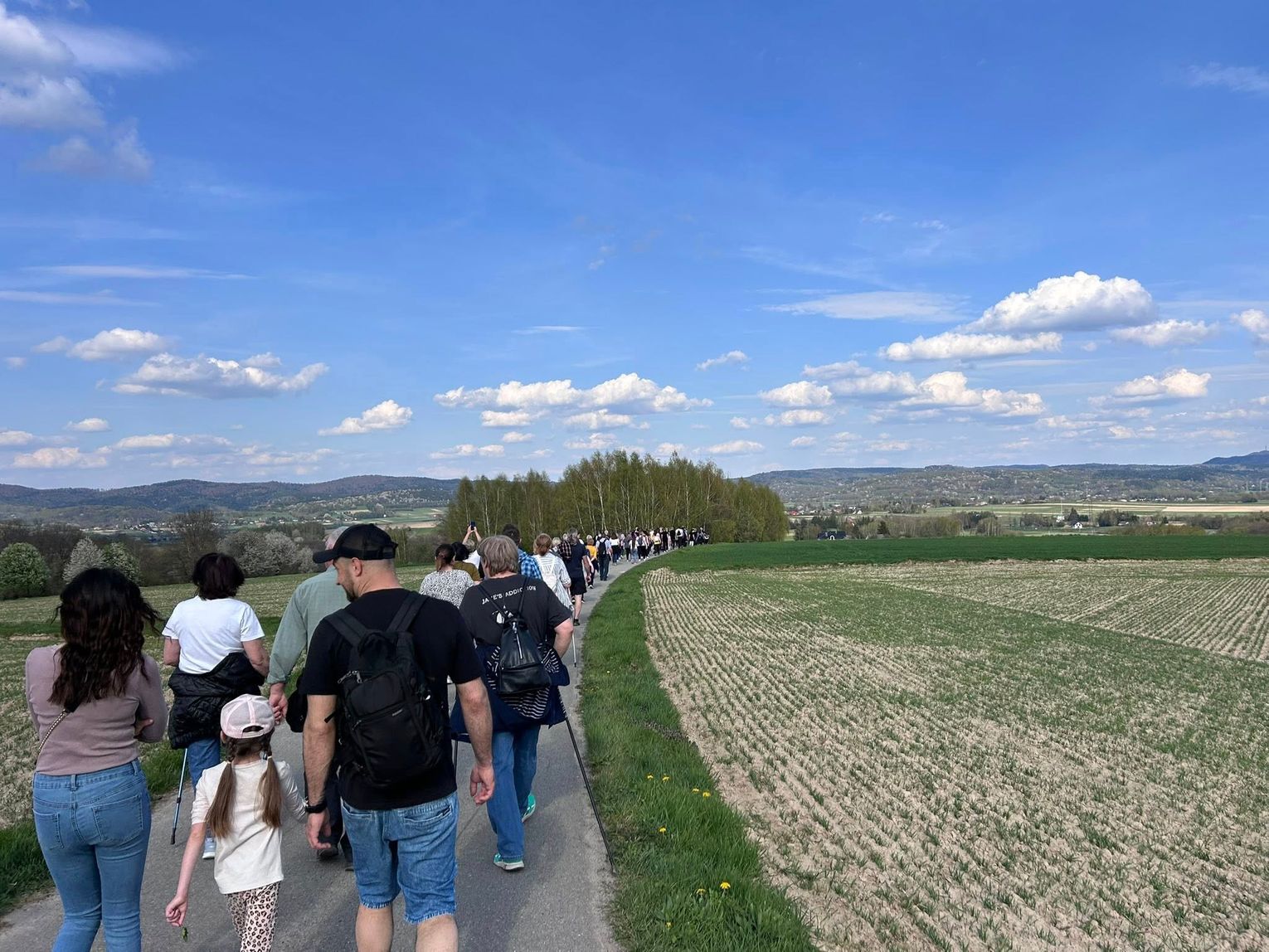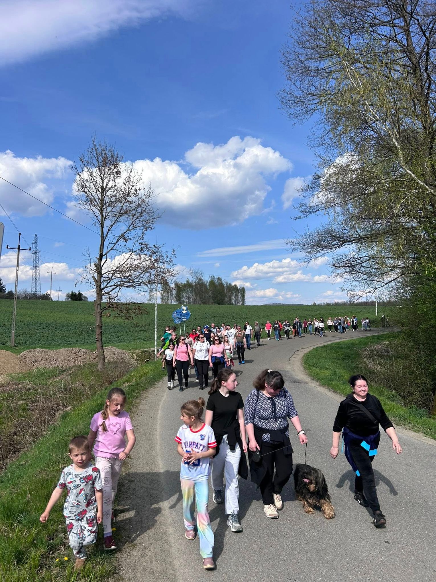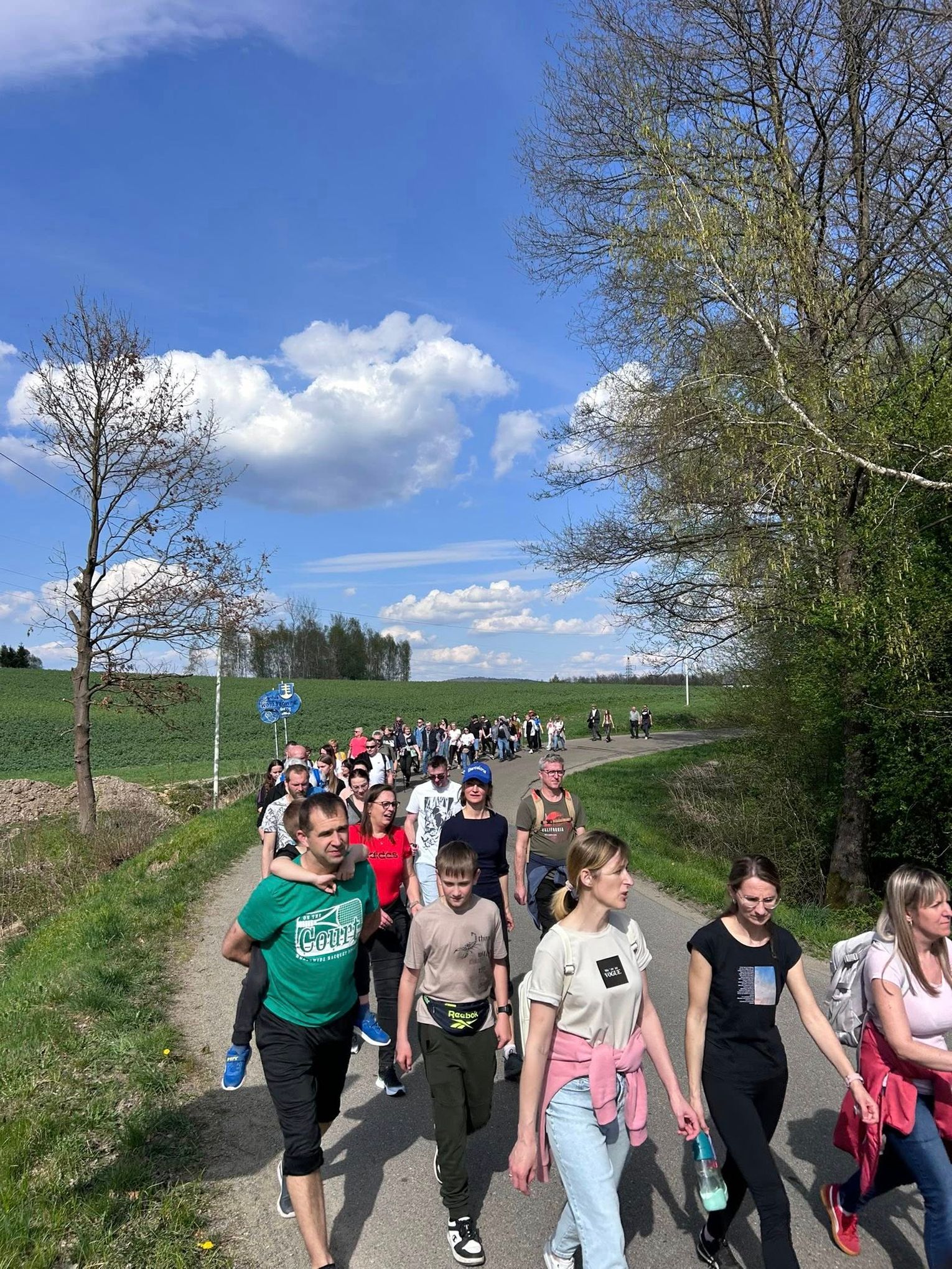 Uczestnicy pokonali blisko dziesięciokilometrową trasę, prowadzącą przez malownicze okolice. Wiosenna przyroda prezentowała się w pełnej krasie – kwitnące drzewa, soczysta zieleń traw, młode liście i śpiew ptaków tworzyły wyjątkową scenerię. Spacerowicze mogli na chwilę zwolnić tempo codzienności, nacieszyć się naturą i dostrzec piękno budzącej się do życia przyrody.