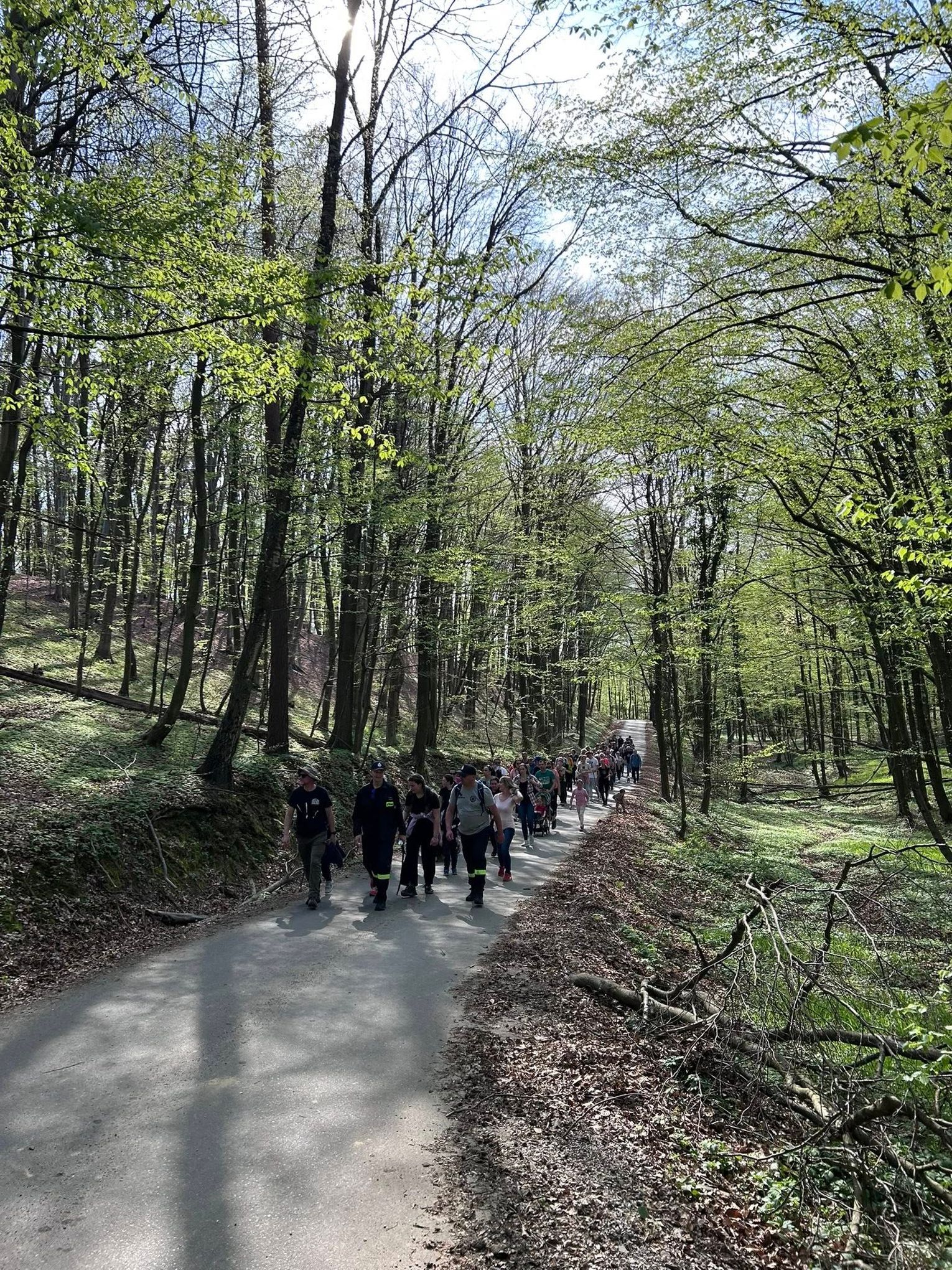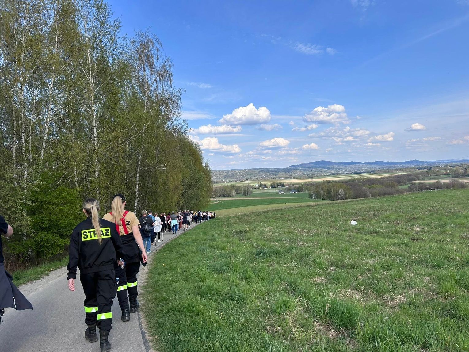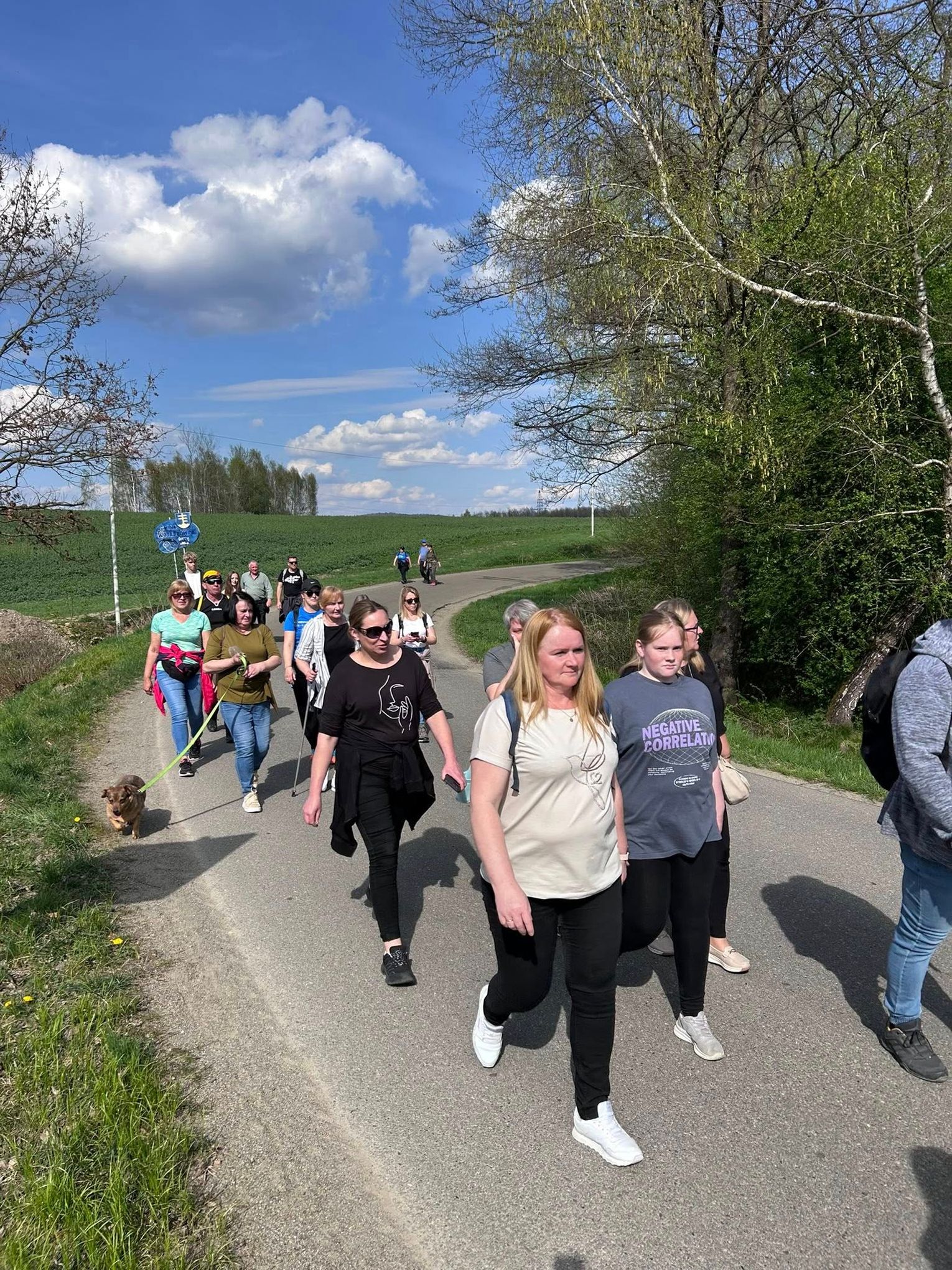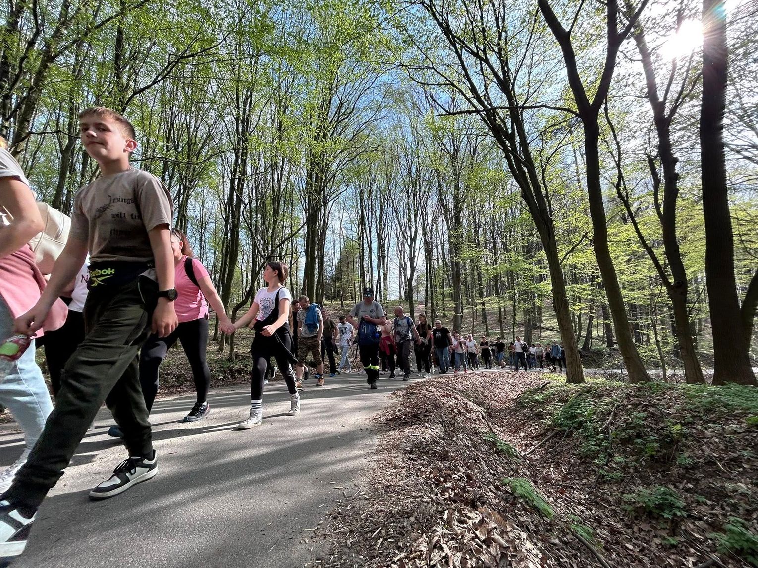 Uczestnicy pokonali blisko dziesięciokilometrową trasę, prowadzącą przez malownicze okolice. Wiosenna przyroda prezentowała się w pełnej krasie – kwitnące drzewa, soczysta zieleń traw, młode liście i śpiew ptaków tworzyły wyjątkową scenerię. Spacerowicze mogli na chwilę zwolnić tempo codzienności, nacieszyć się naturą i dostrzec piękno budzącej się do życia przyrody.