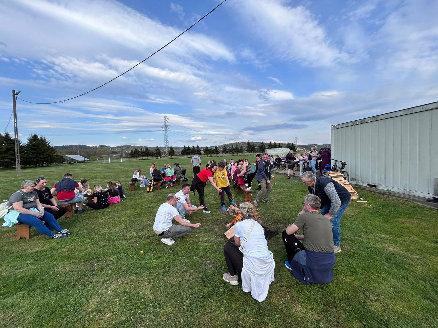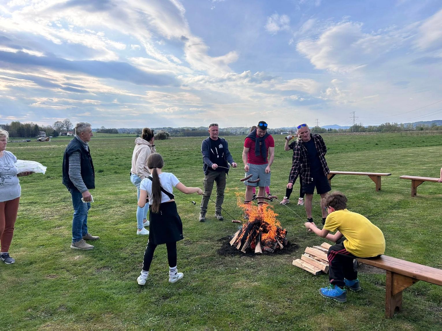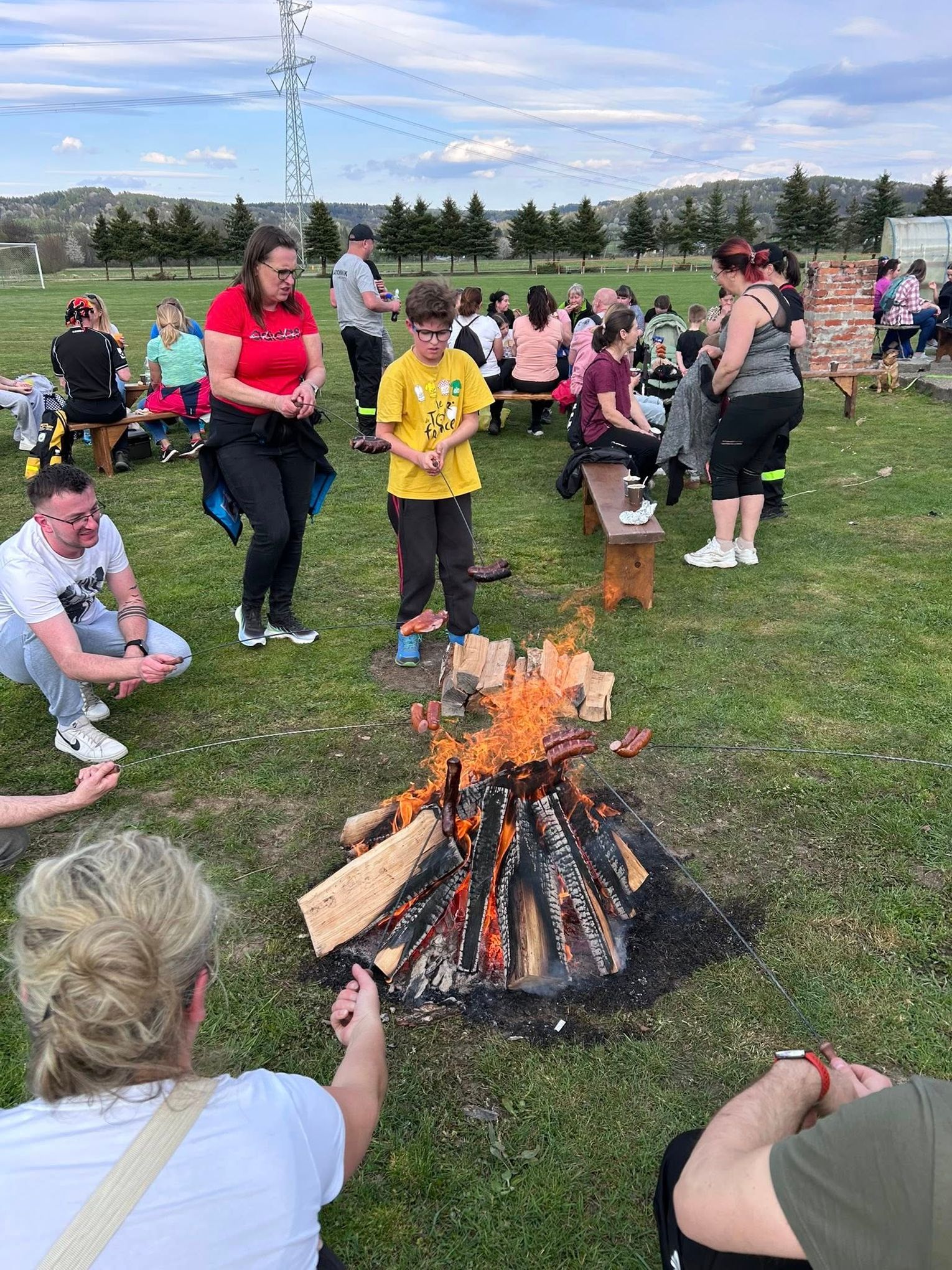 Dodatkową atrakcją było ognisko, przy którym można było upiec kiełbaski, odpocząć i porozmawiać w swobodnej, serdecznej atmosferze. Nikt się nie spieszył – spotkanie sprzyjało integracji i wspólnemu spędzaniu czasu.