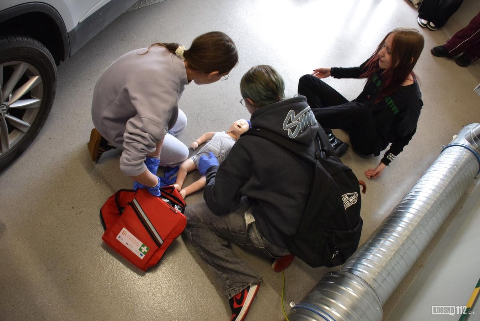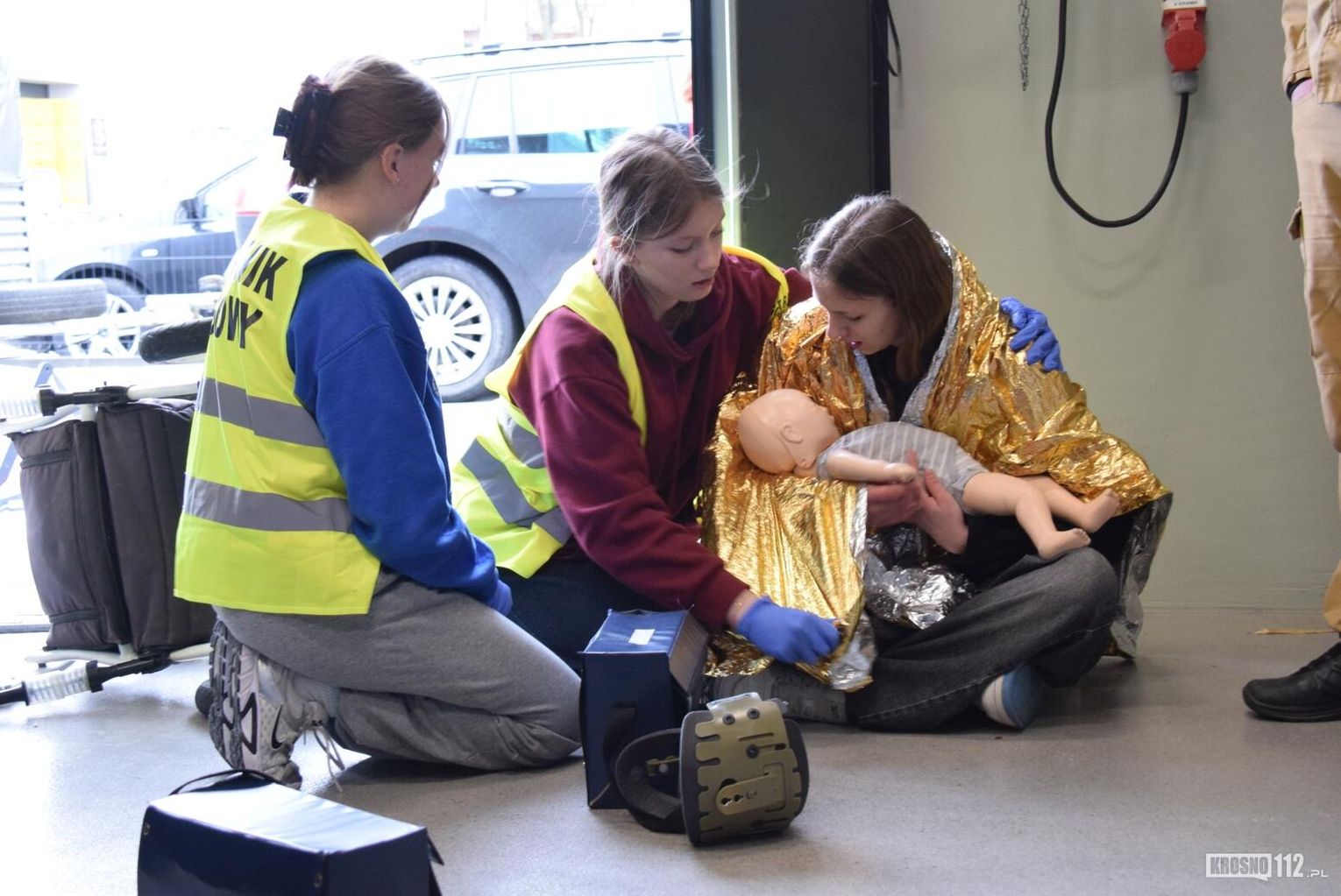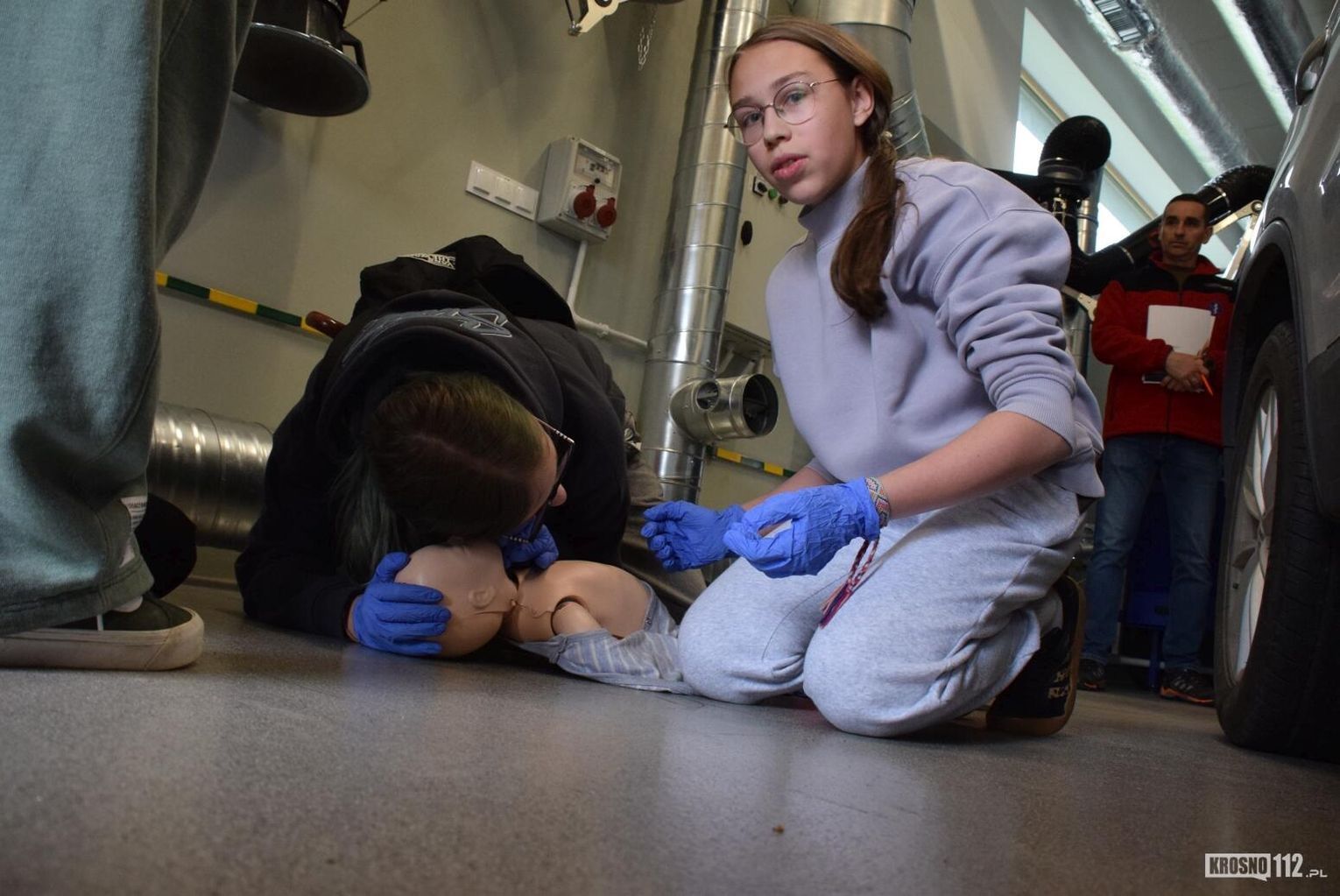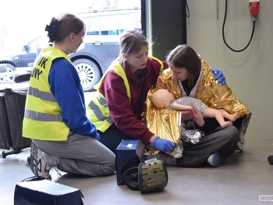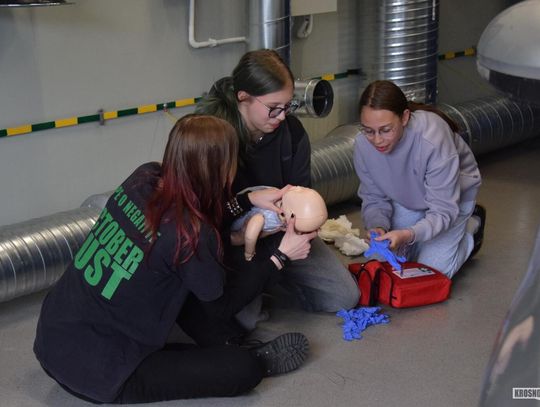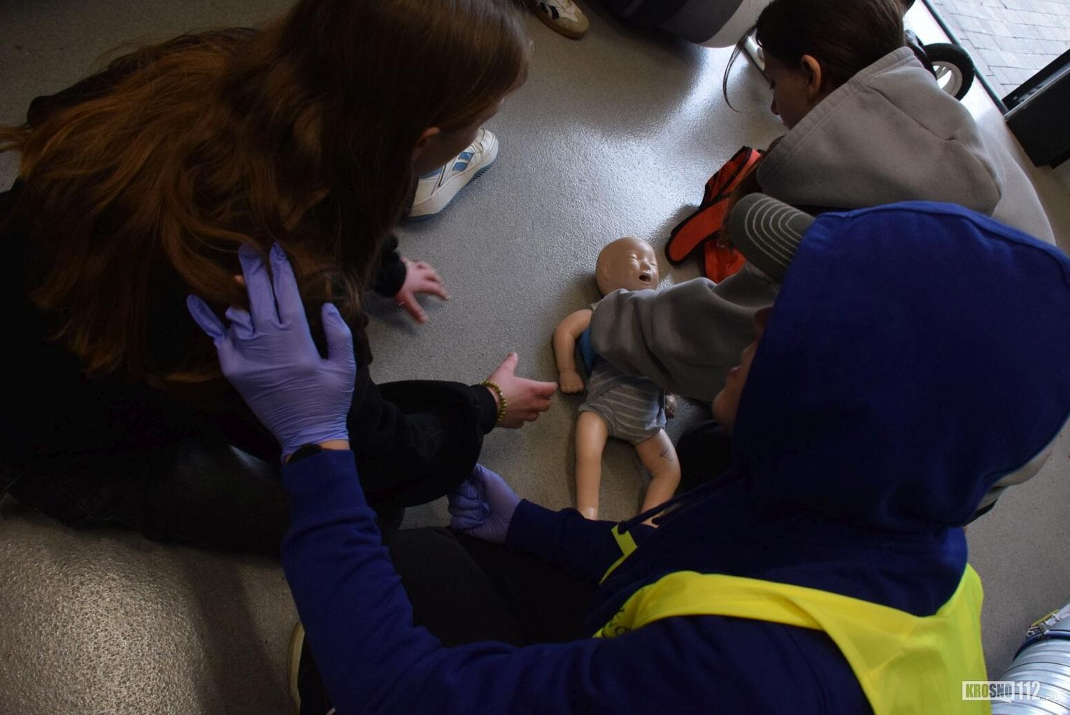 Na trzecim stanowisku uczniowie prowadzili resuscytację krążeniowo-oddechową na fantomach niemowlaka, dziecka i osoby dorosłej według ostatnich wytycznych Europejskiej Rady Resuscytacji.