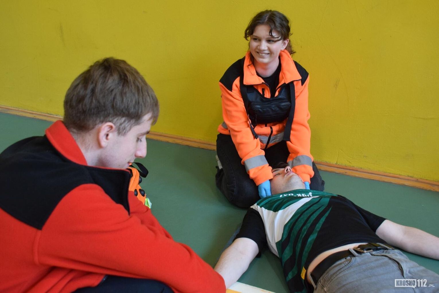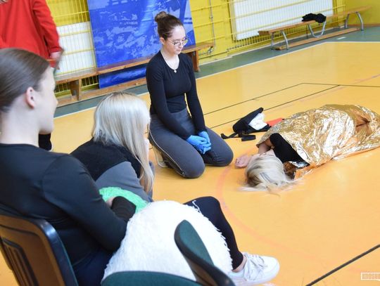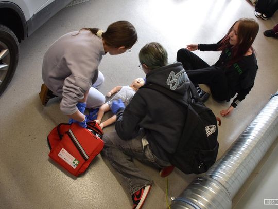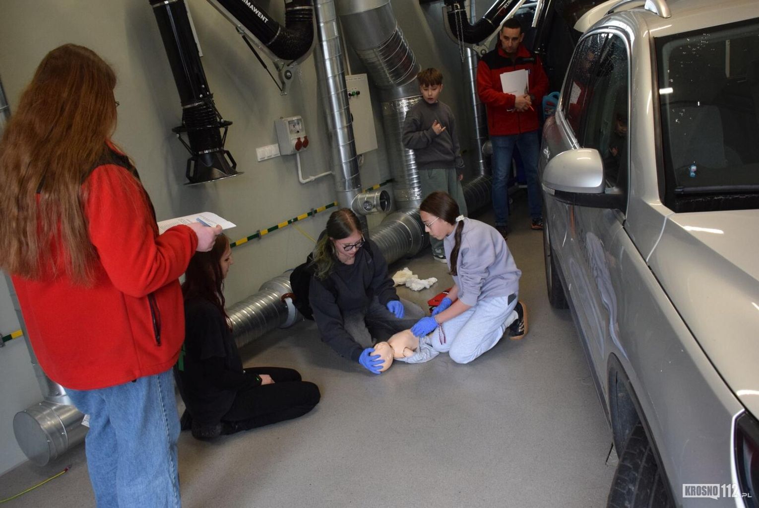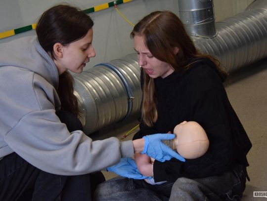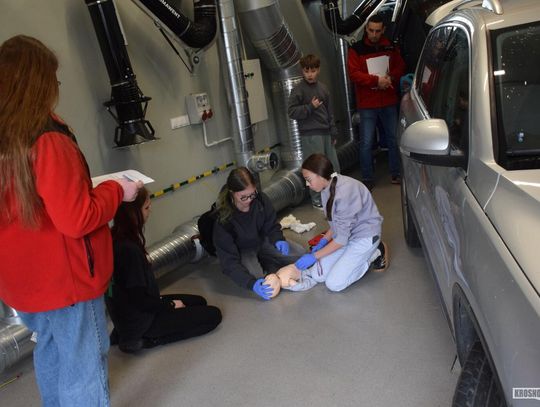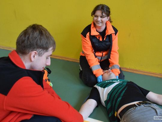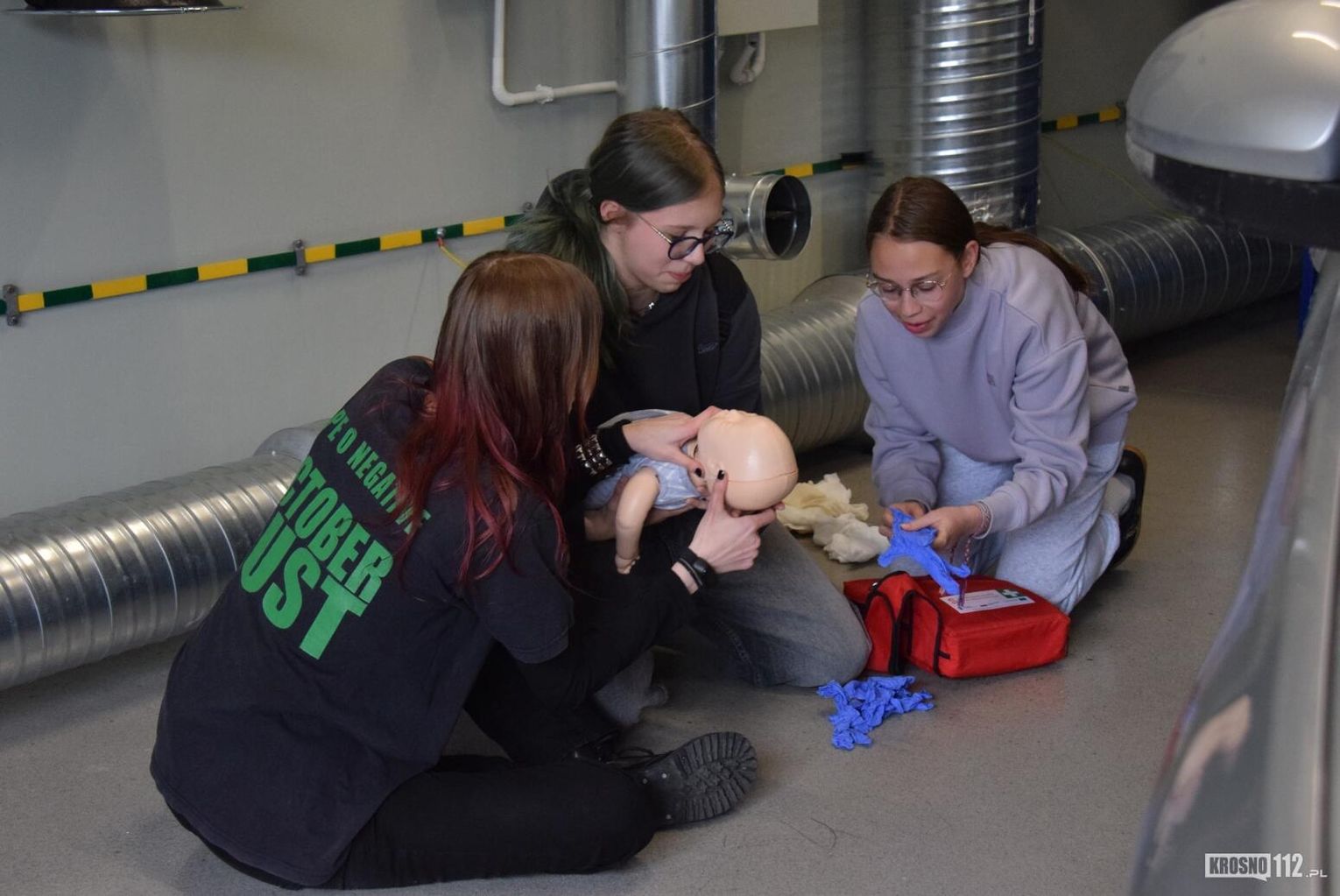 Na trzecim stanowisku uczniowie prowadzili resuscytację krążeniowo-oddechową na fantomach niemowlaka, dziecka i osoby dorosłej według ostatnich wytycznych Europejskiej Rady Resuscytacji.