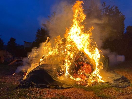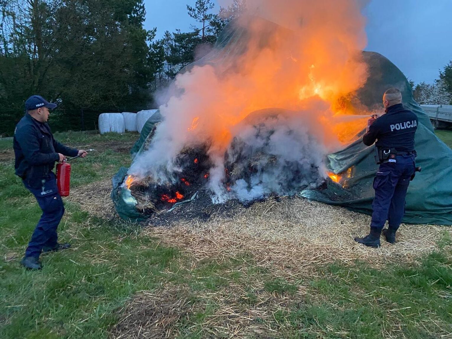 Podczas rozmowy z nim funkcjonariusze wyczuli w powietrzu zapach dymu. Chwilę później, w odległości około 50 metrów od zabudowań mieszkalnych, zauważyli ogień w miejscu, gdzie składowane było suche siano.