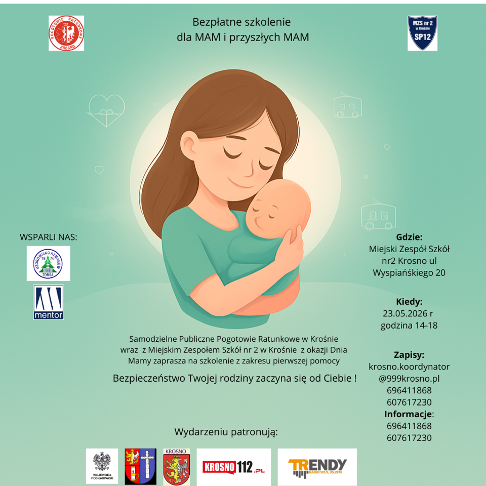 Wydarzenie odbędzie się 23 maja 2026 roku w godzinach 14.00–18.00 na terenie Miejskiego Zespołu Szkół nr 2 w Krośnie. Organizatorzy podkreślają, że szybka i właściwa reakcja w sytuacjach zagrożenia zdrowia lub życia ma kluczowe znaczenie, szczególnie w przypadku niemowląt i dzieci. To właśnie mamy najczęściej jako pierwsze reagują, gdy dziecku dzieje się krzywda.