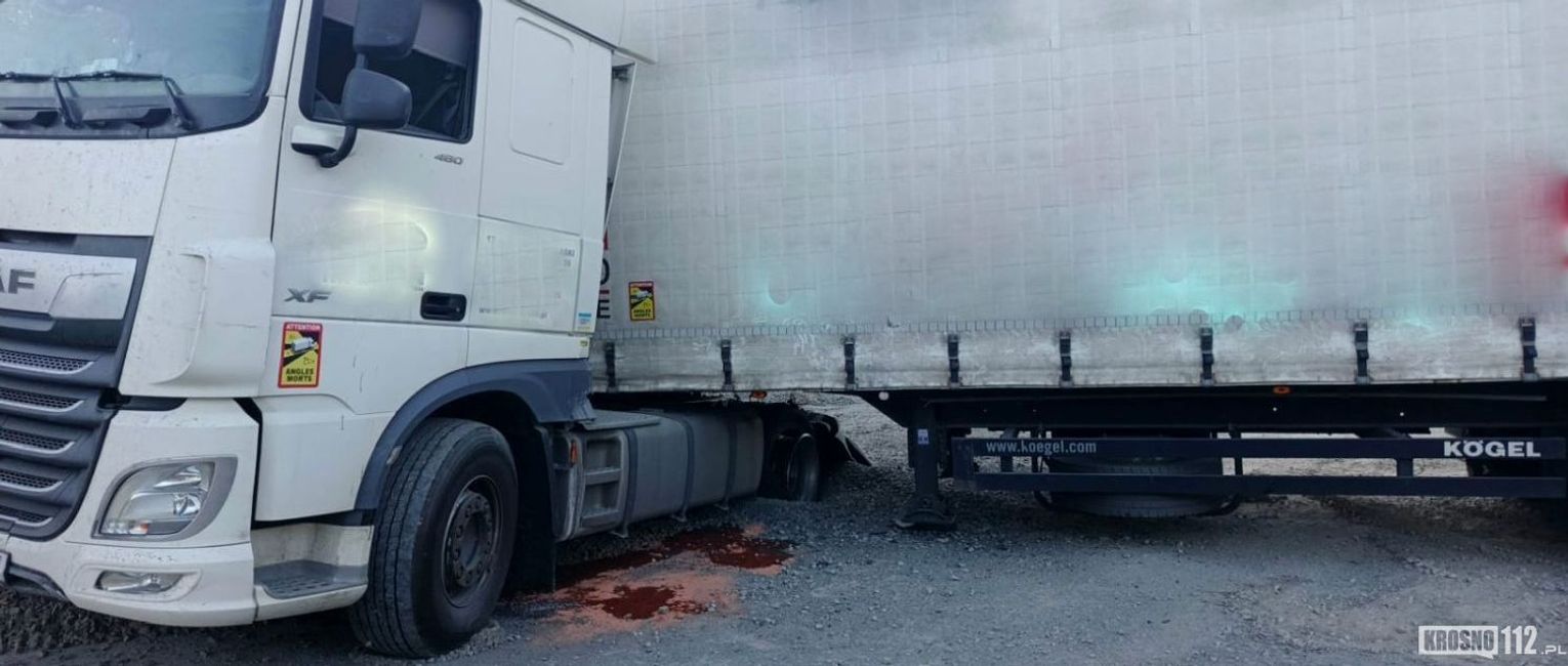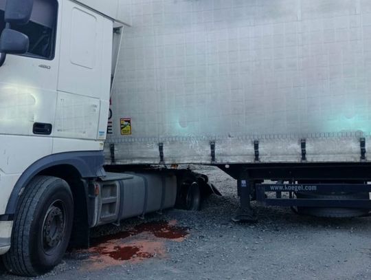 Jak ustalili policjanci, kierujący zespołem pojazdów: ciągnikiem siodłowym marki DAF wraz z naczepą chwilę wcześniej wyjechał ze stacji paliw w Barwinku.