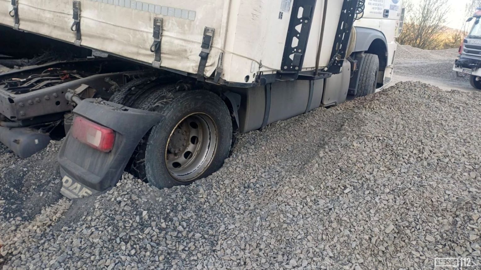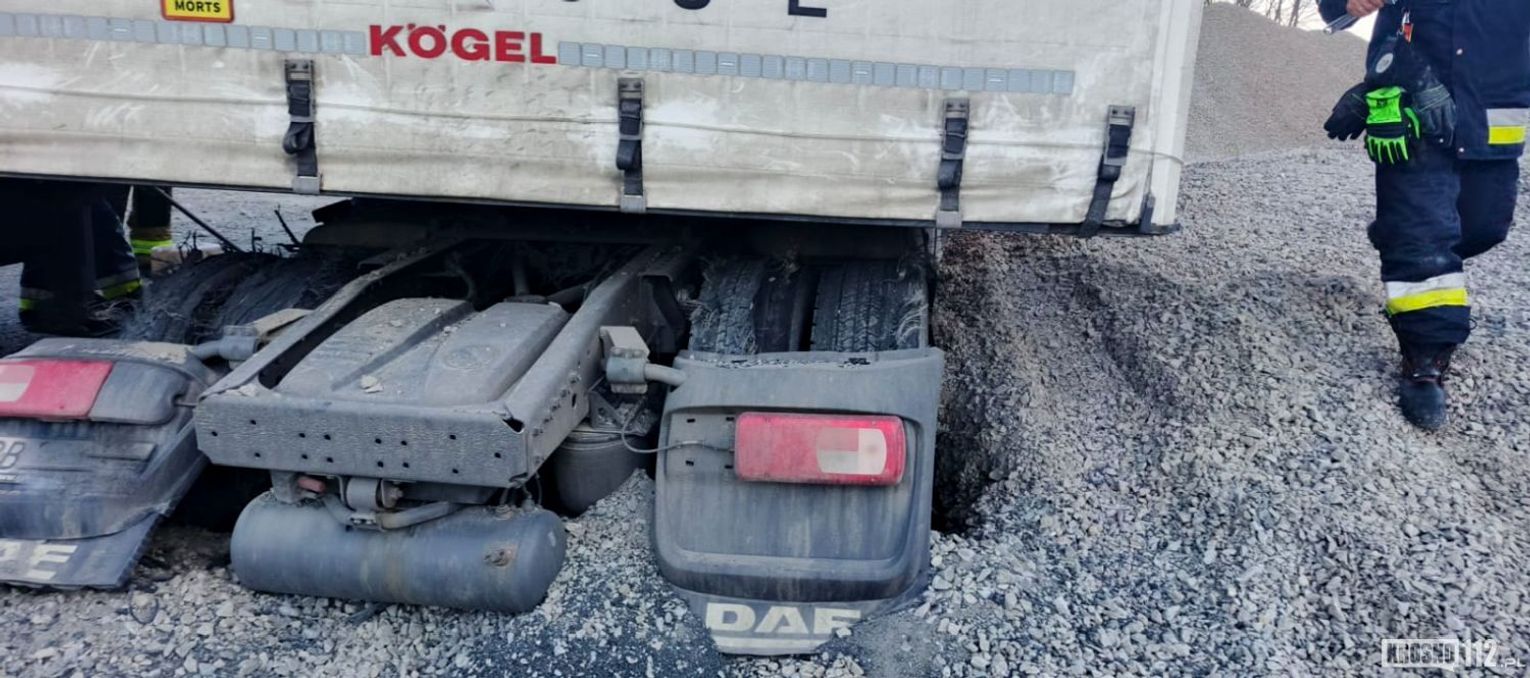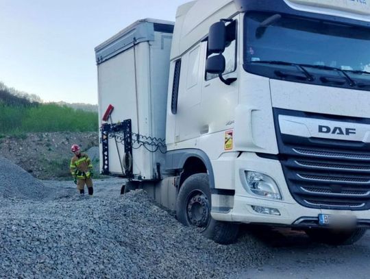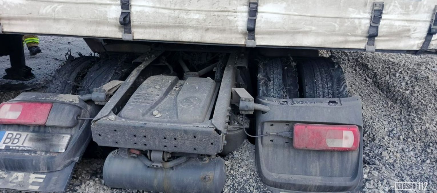 Próba zawracania zakończyła się jednak fiaskiem. Ciężarówka ugrzęzła w grząskim podłożu. Kolejne próby wydostania pojazdu tylko pogorszyły sytuację – doszło do całkowitego uszkodzenia opon oraz zbiornika z płynem AdBlue.