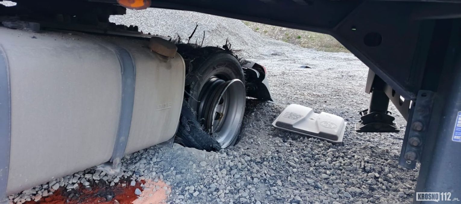 Ze względu na uszkodzenie zbiornika AdBlue, na miejsce skierowano także strażaków z OSP KSRG Tylawa oraz JRG Krosno, którzy zabezpieczyli teren zdarzenia.