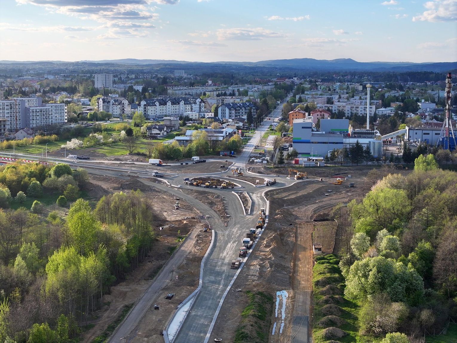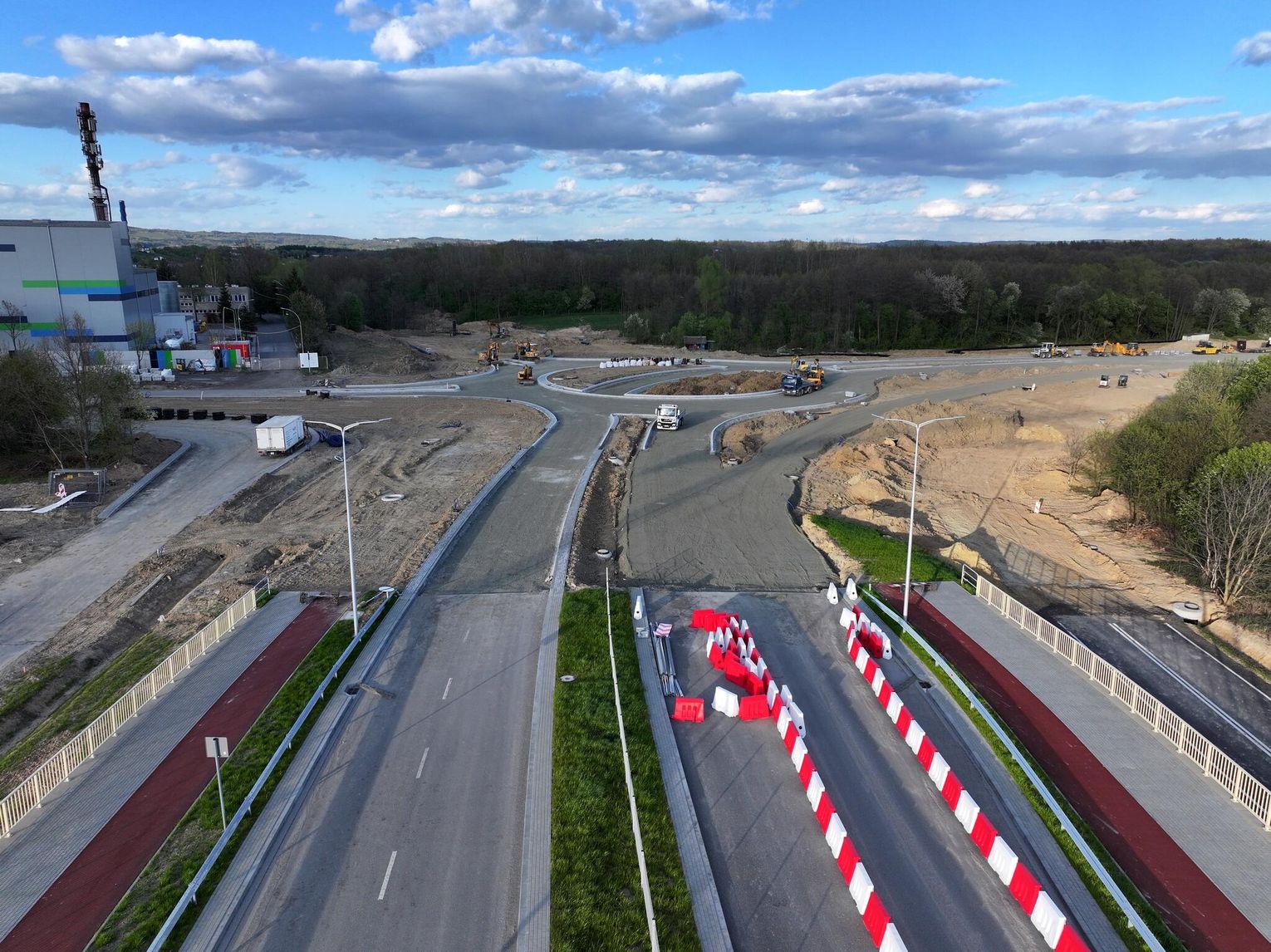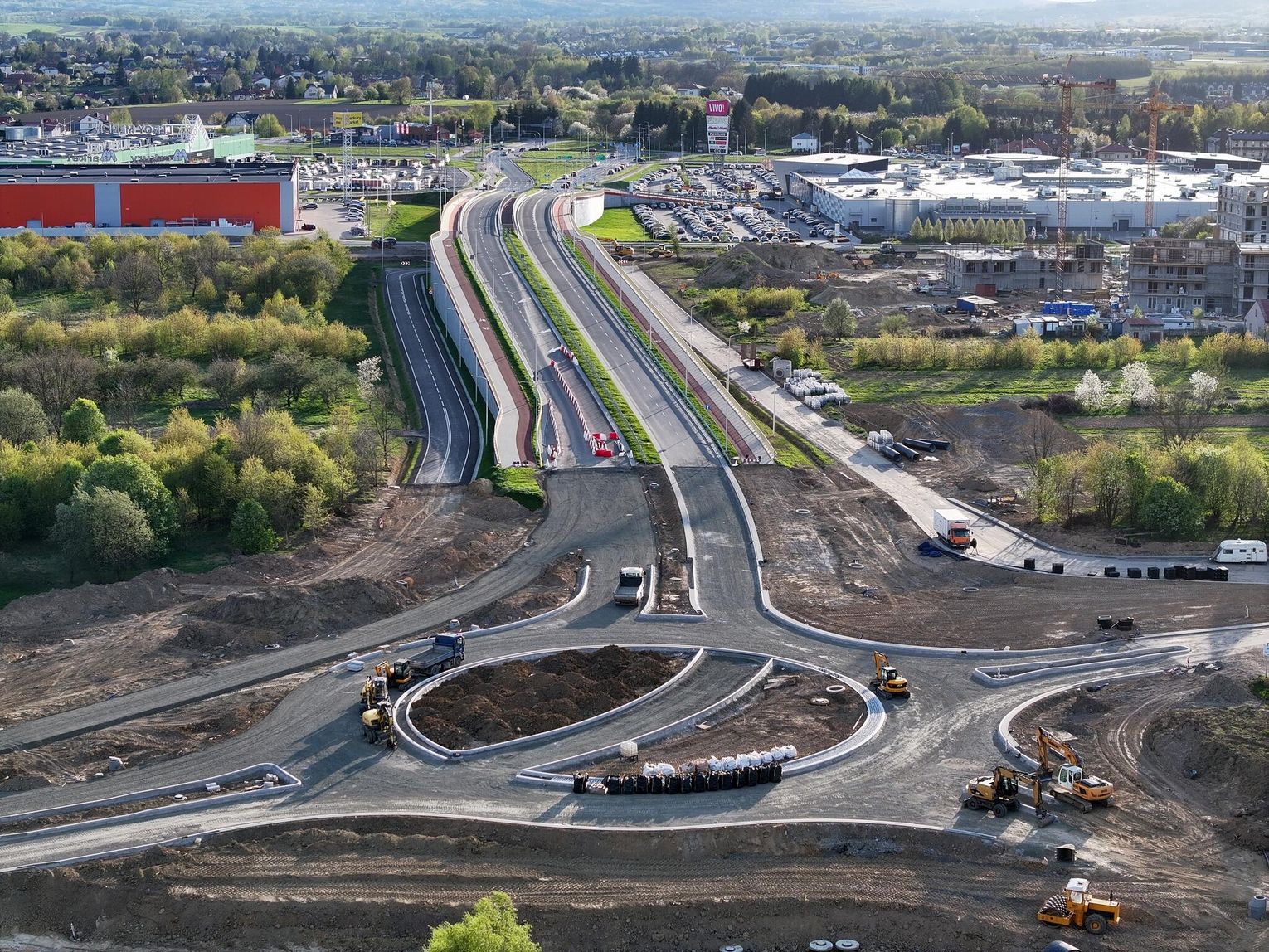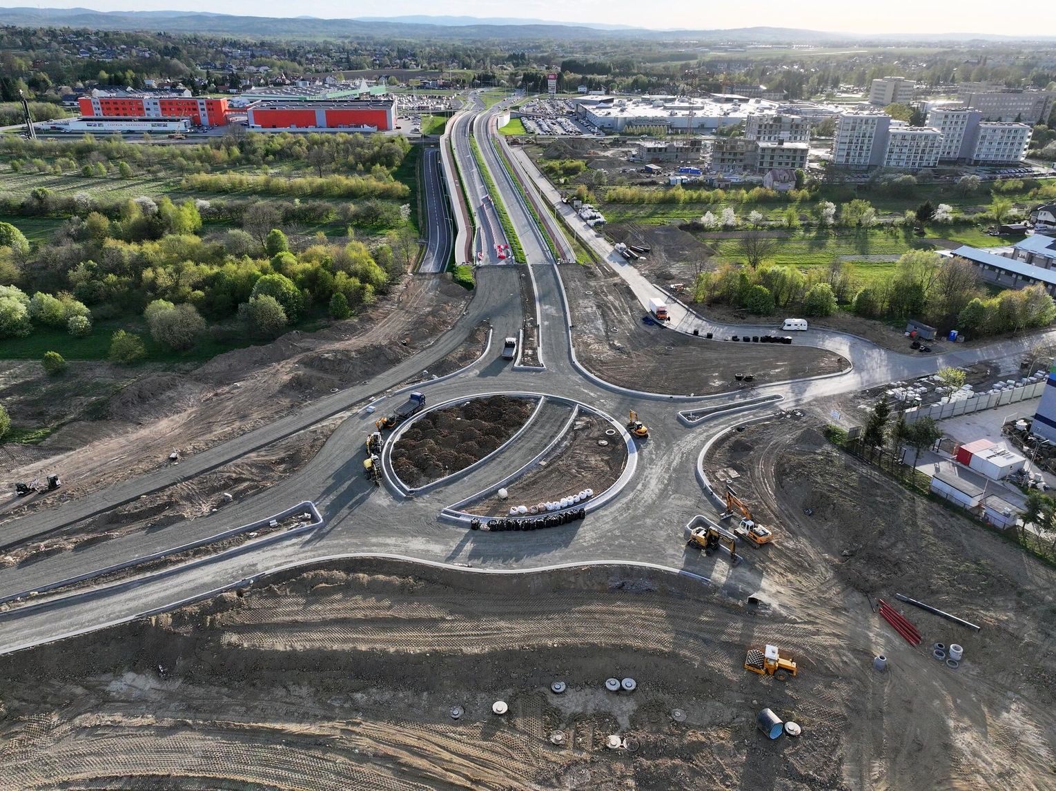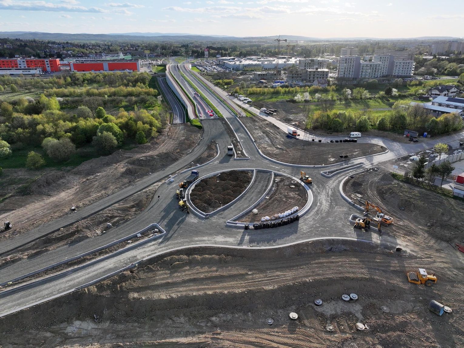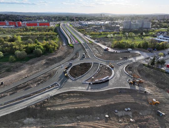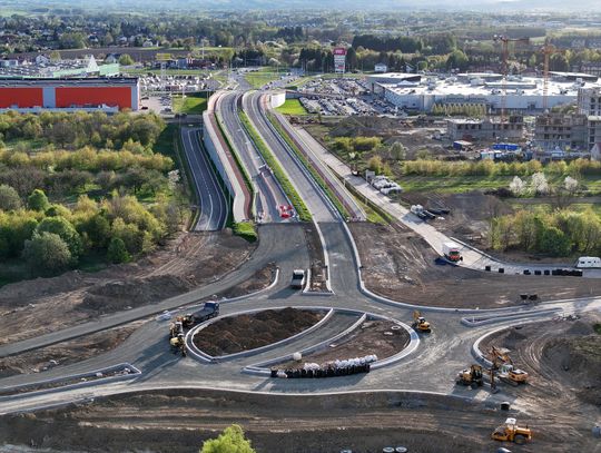 Nowe rondo będzie miało około 65 metrów średnicy i znacząco usprawni ruch w tej części miasta, szczególnie po uruchomieniu połączenia z S19. Widać wyraźny postęp prac przy samym rondzie. Układ drogowy jest już w dużej mierze uformowany. Widoczne są krawężniki, wyspa centralna oraz przygotowane podbudowy pod nawierzchnię asfaltową.