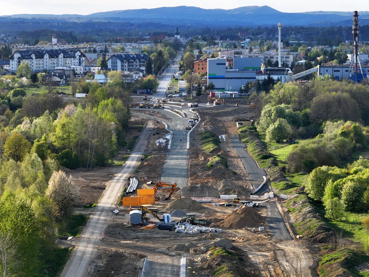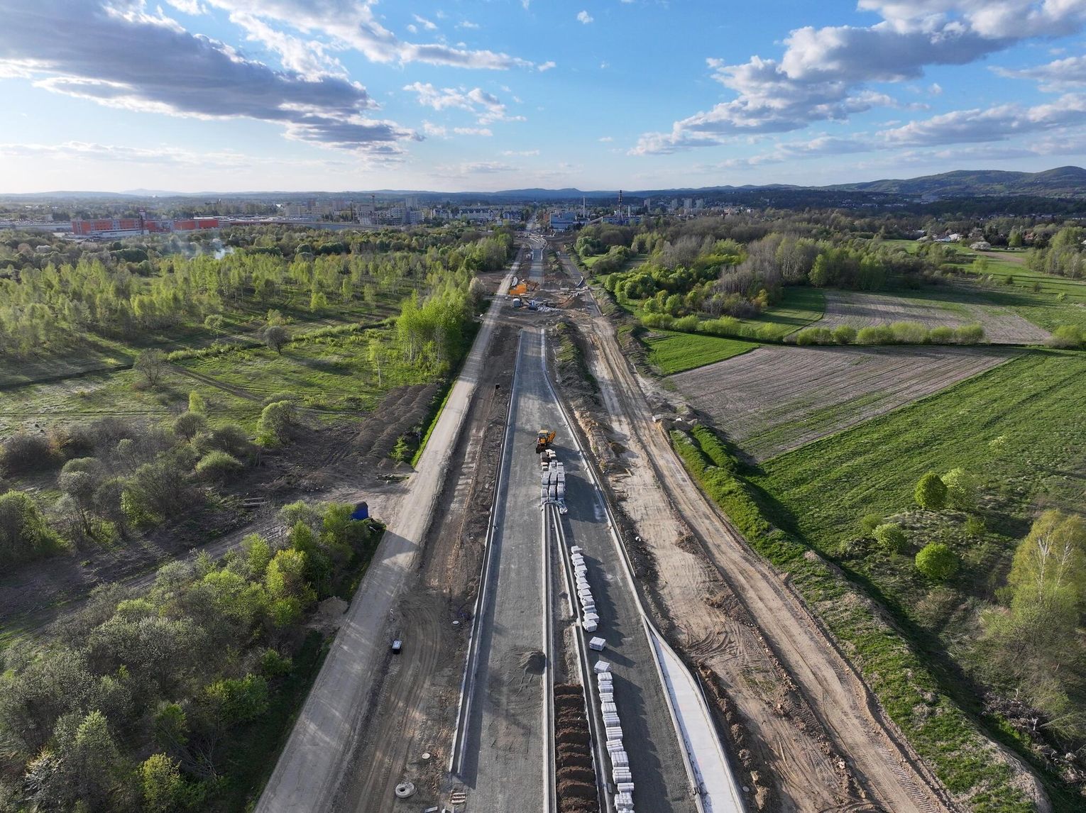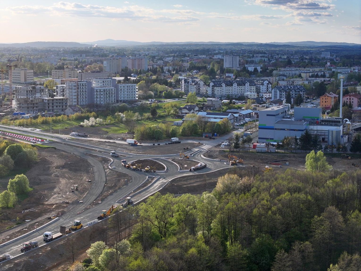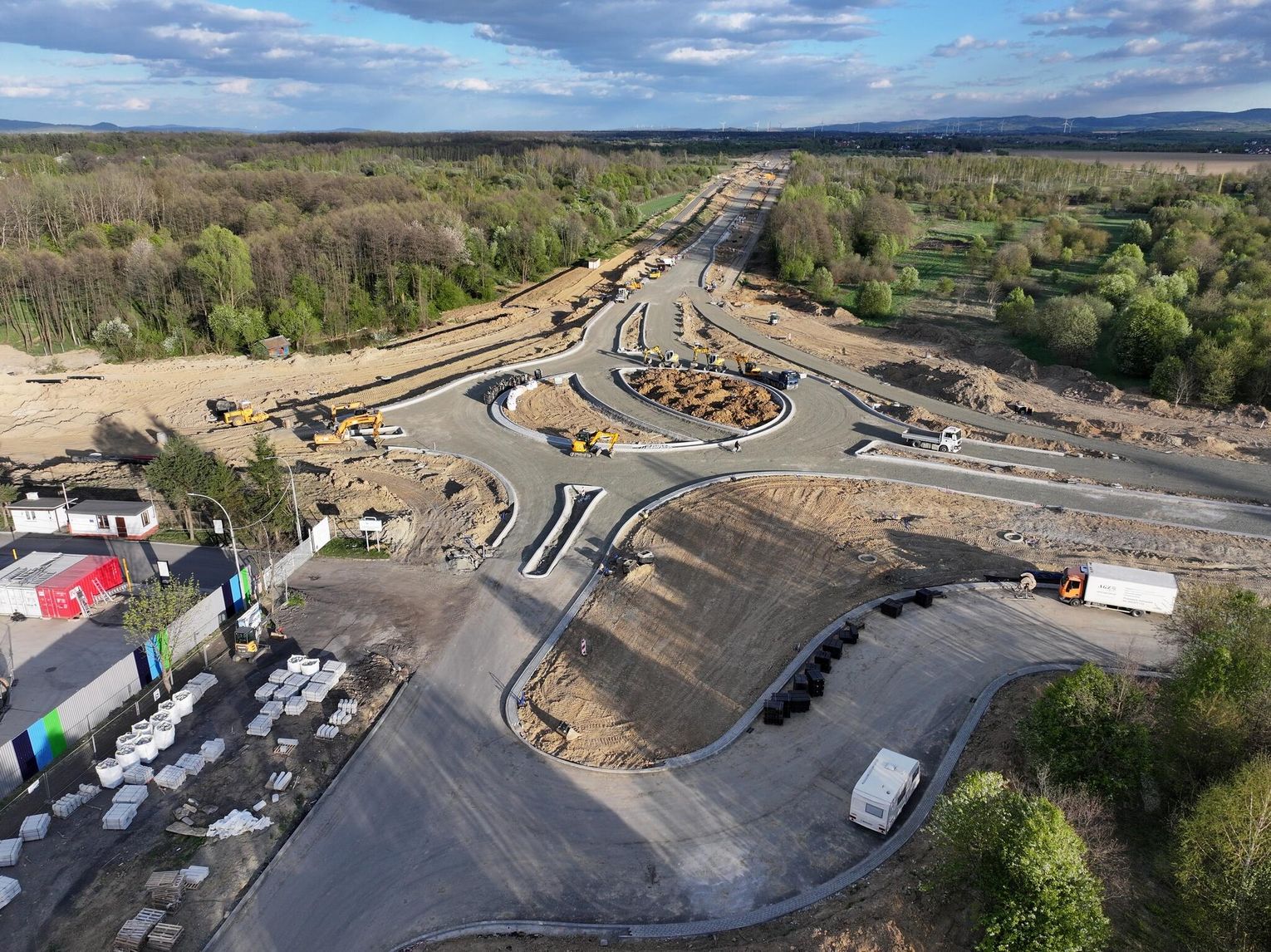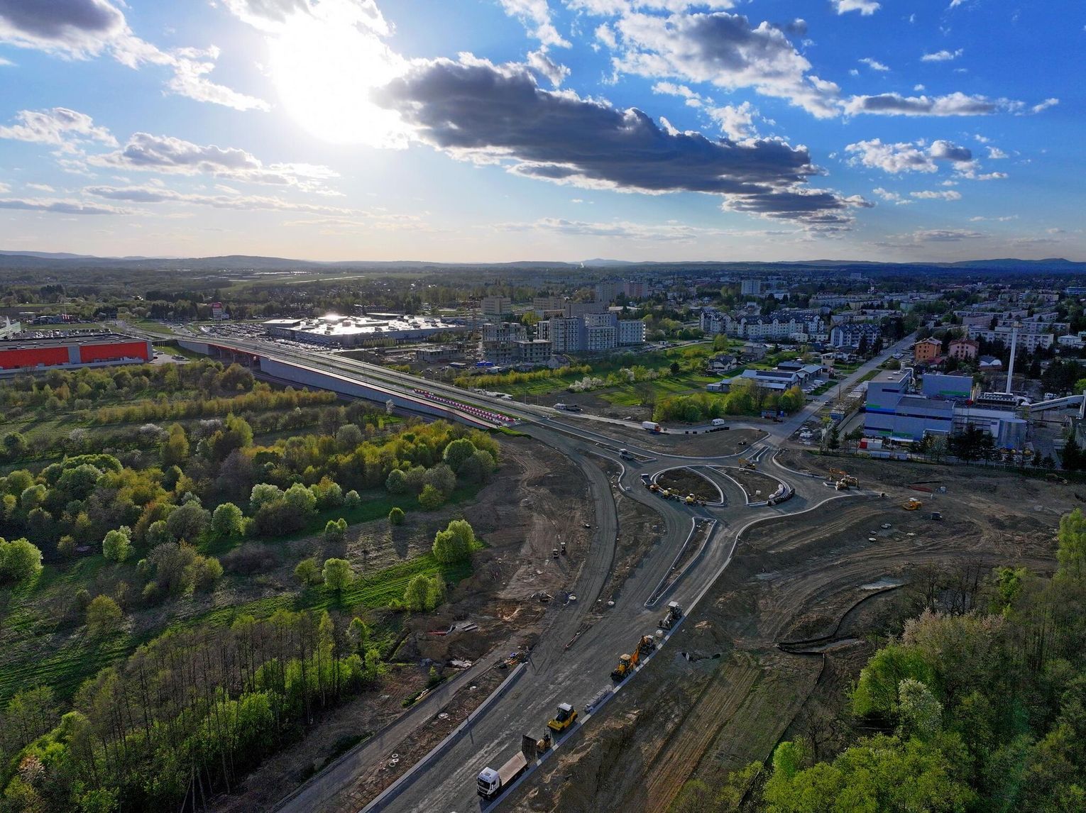 Nowe rondo będzie miało około 65 metrów średnicy i znacząco usprawni ruch w tej części miasta, szczególnie po uruchomieniu połączenia z S19. Widać wyraźny postęp prac przy samym rondzie. Układ drogowy jest już w dużej mierze uformowany. Widoczne są krawężniki, wyspa centralna oraz przygotowane podbudowy pod nawierzchnię asfaltową.