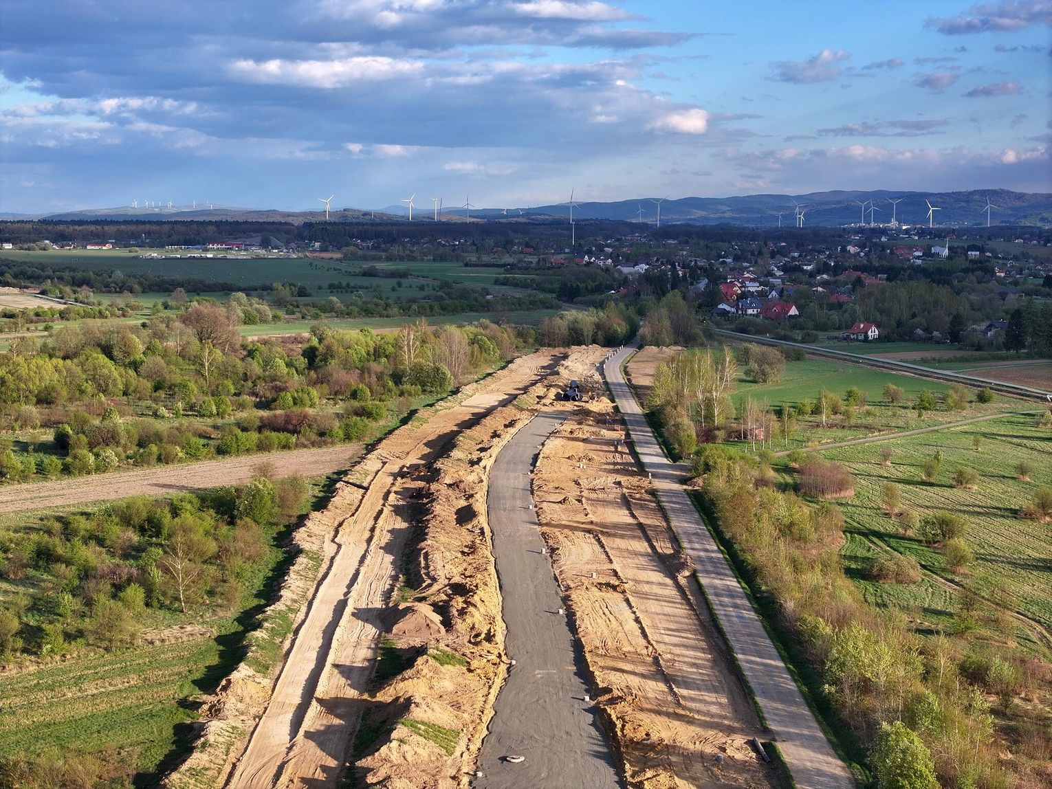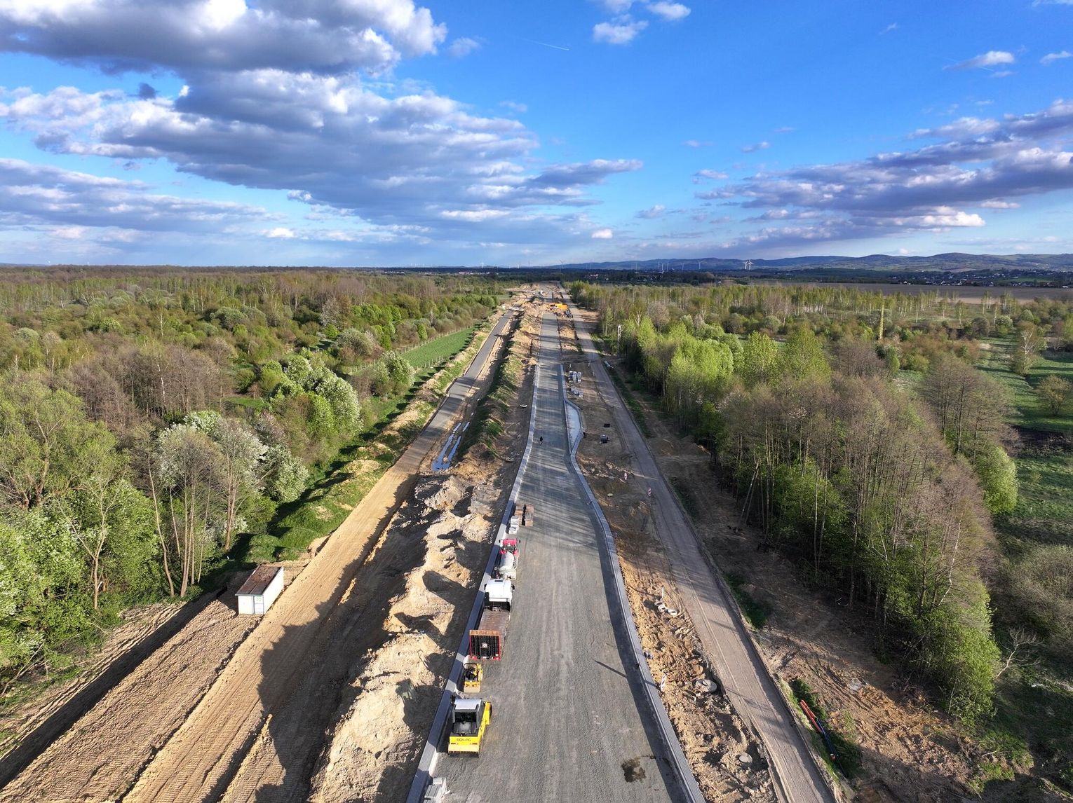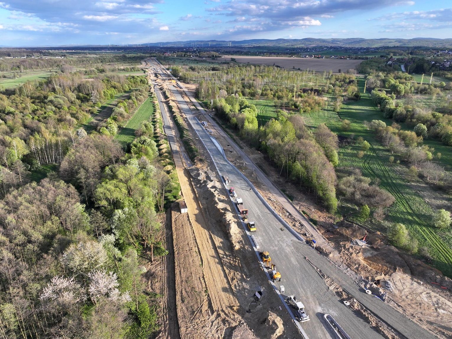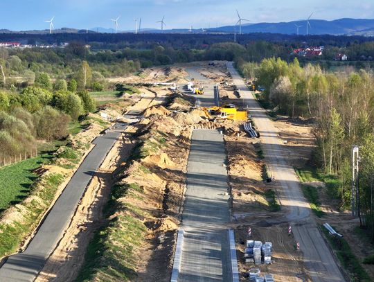 Obecnie prowadzone są prace ziemne i wykończeniowe. Do wykonania pozostały m.in. warstwy ścieralne asfaltu, oznakowanie oraz elementy infrastruktury drogowej. Na odcinkach prowadzących do ronda prace są mniej zaawansowane, ale również postępują. W wielu miejscach wykonano już podbudowę drogi. Równolegle prowadzone są roboty związane z odwodnieniem oraz przygotowaniem poboczy i skarp. Widać także montaż elementów infrastruktury podziemnej.