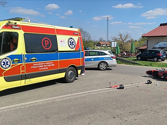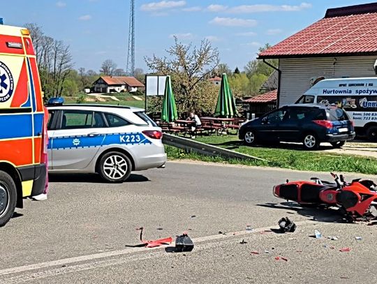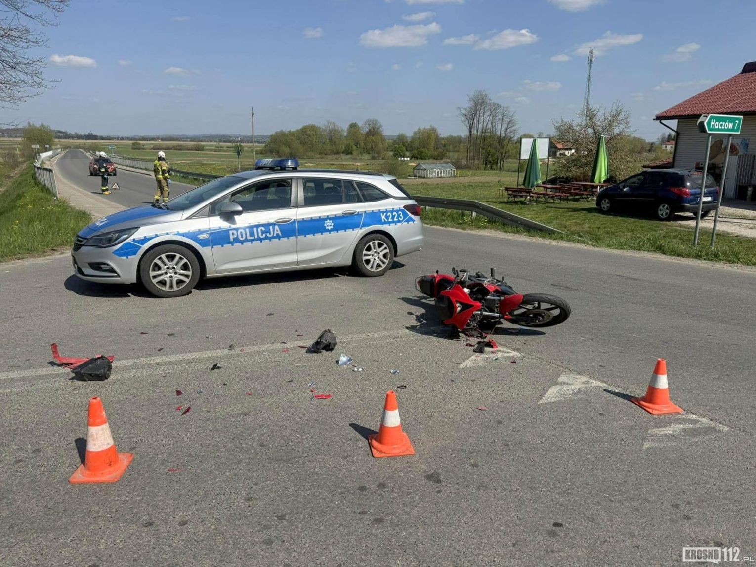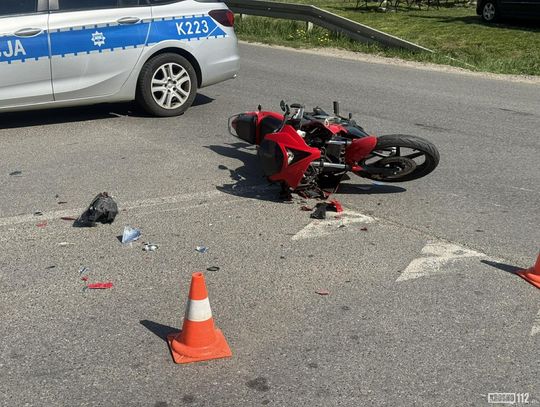 Pomoc medyczna udzielana jest rannemu motocykliście.
