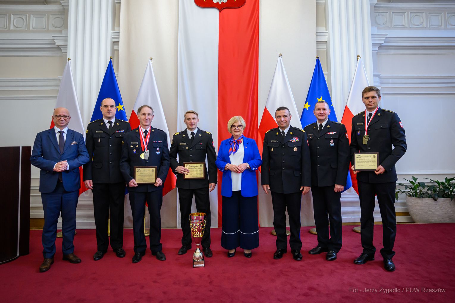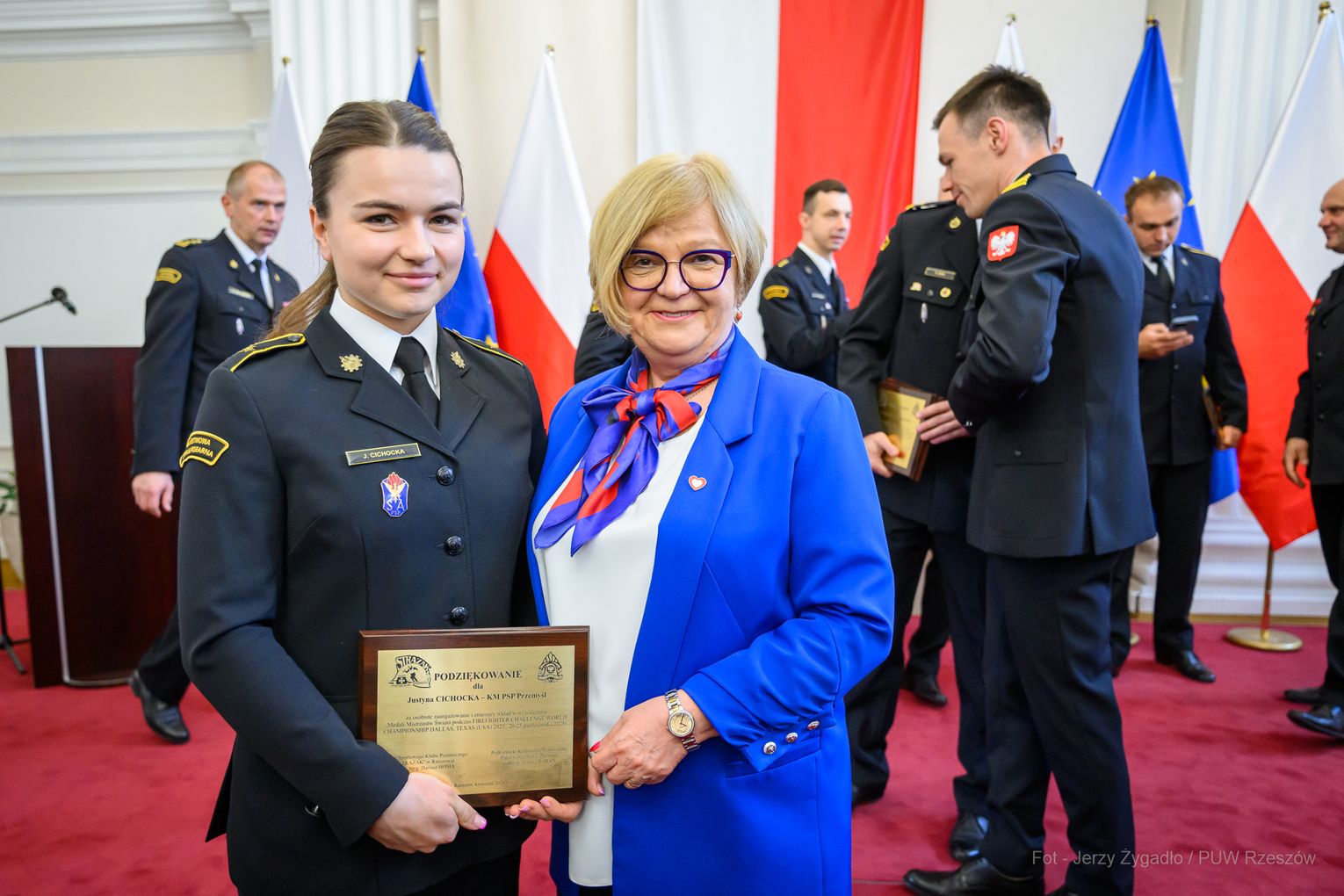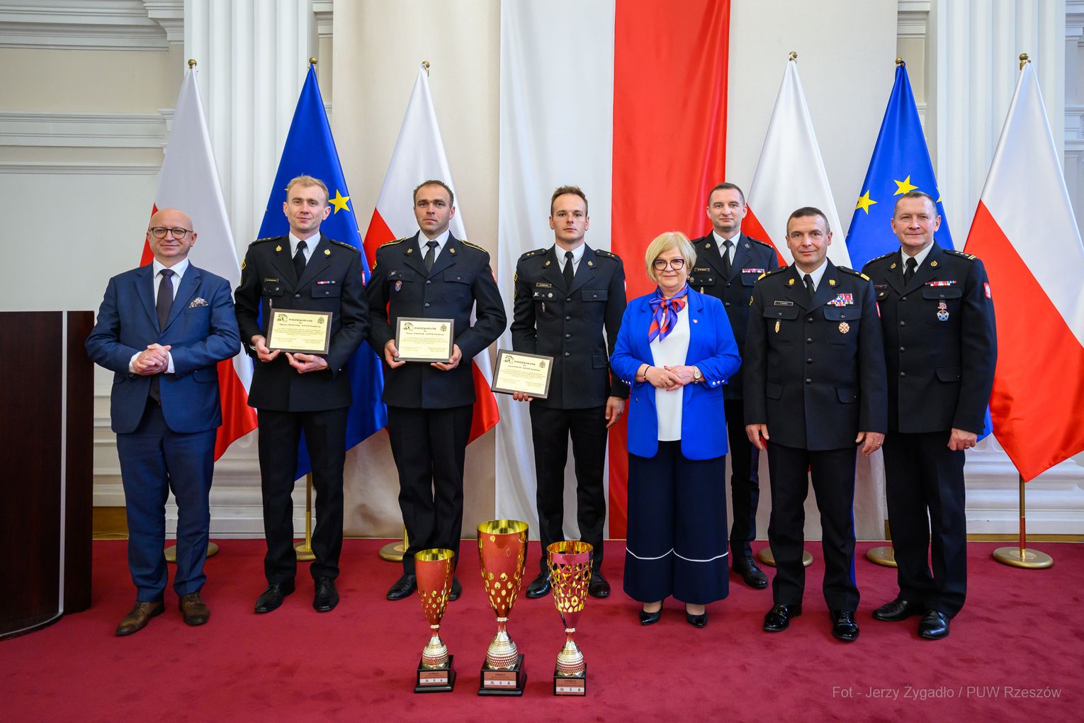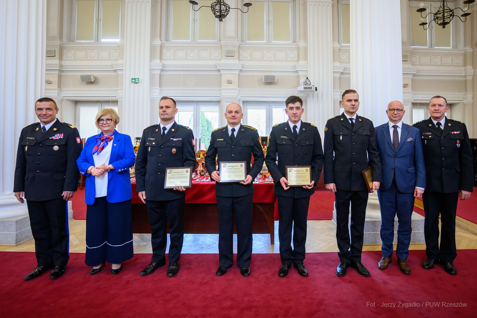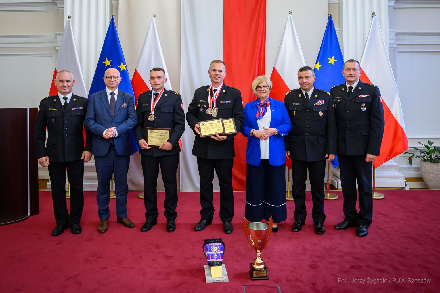 Wojewoda Teresa Kubas-Hul podziękowała strażakom za ich profesjonalizm, odwagę i zaangażowanie, które łączą z sukcesami sportowymi. Nadbryg. Tomasz Baran podkreślił, że osiągnięcia te są efektem pasji i ciężkiej pracy oraz inspiracją dla innych.