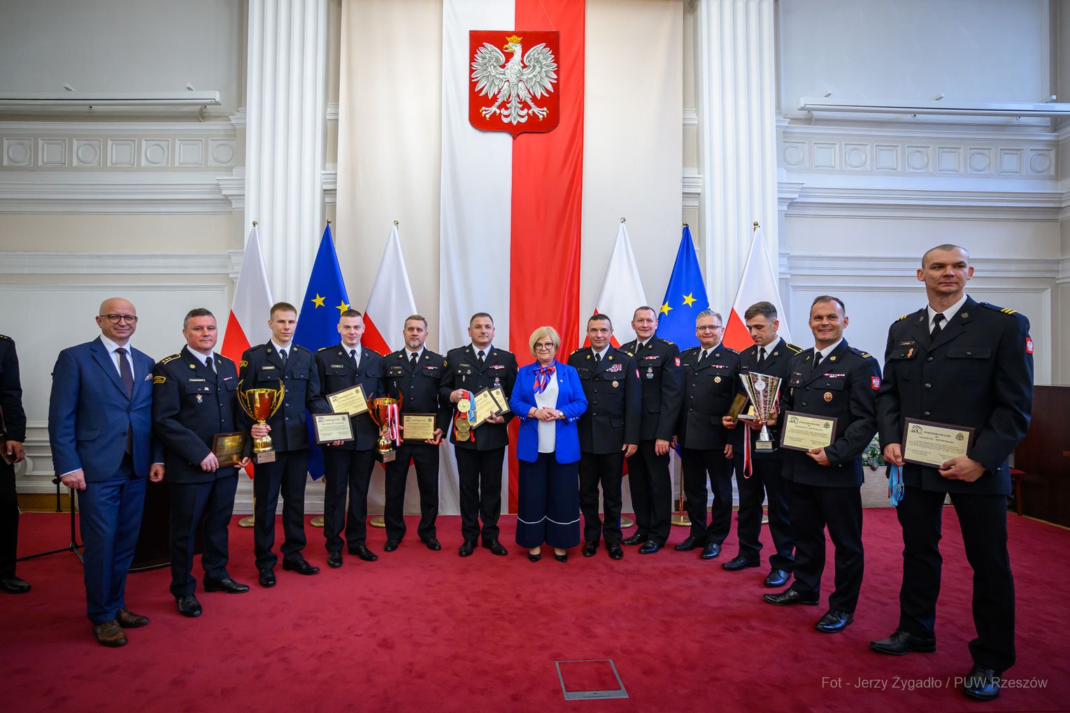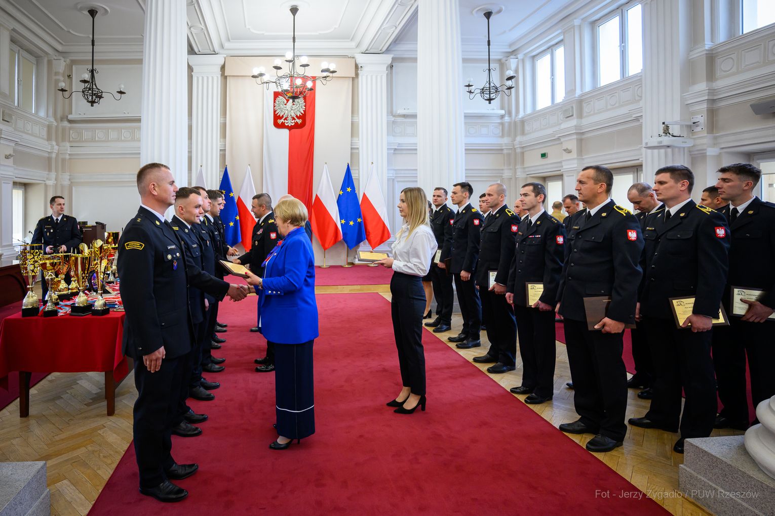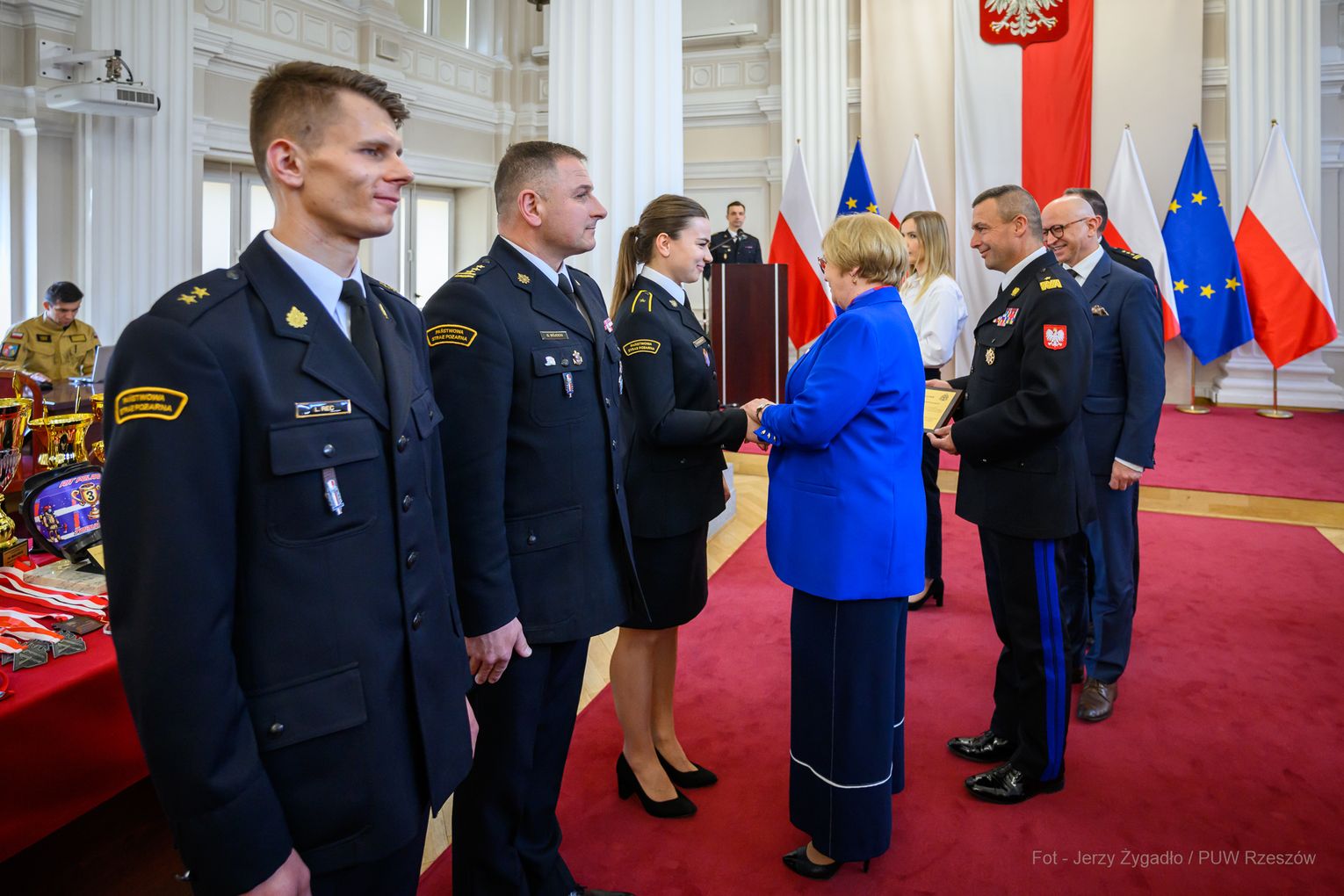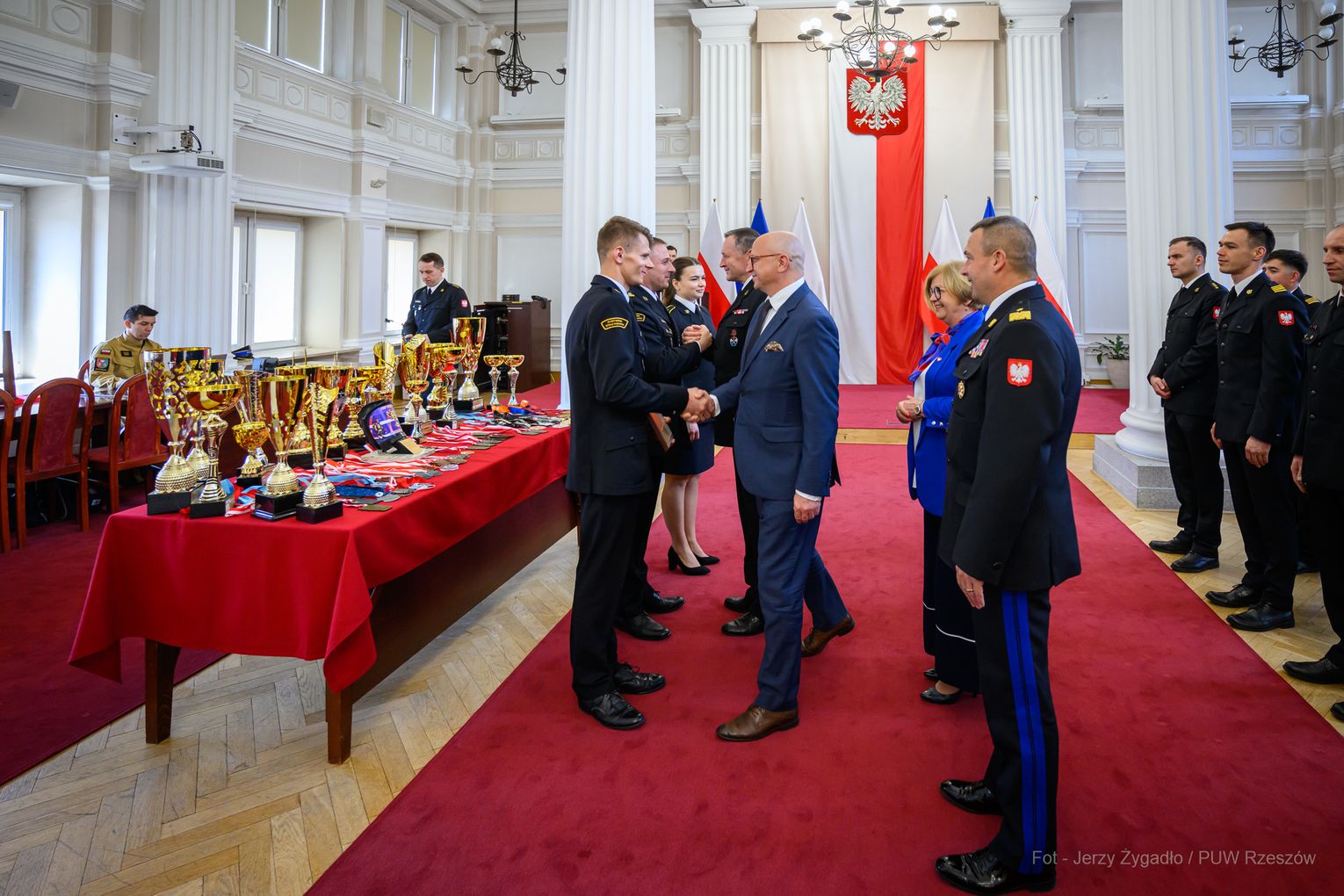 Wojewoda Teresa Kubas-Hul podziękowała strażakom za ich profesjonalizm, odwagę i zaangażowanie, które łączą z sukcesami sportowymi. Nadbryg. Tomasz Baran podkreślił, że osiągnięcia te są efektem pasji i ciężkiej pracy oraz inspiracją dla innych.