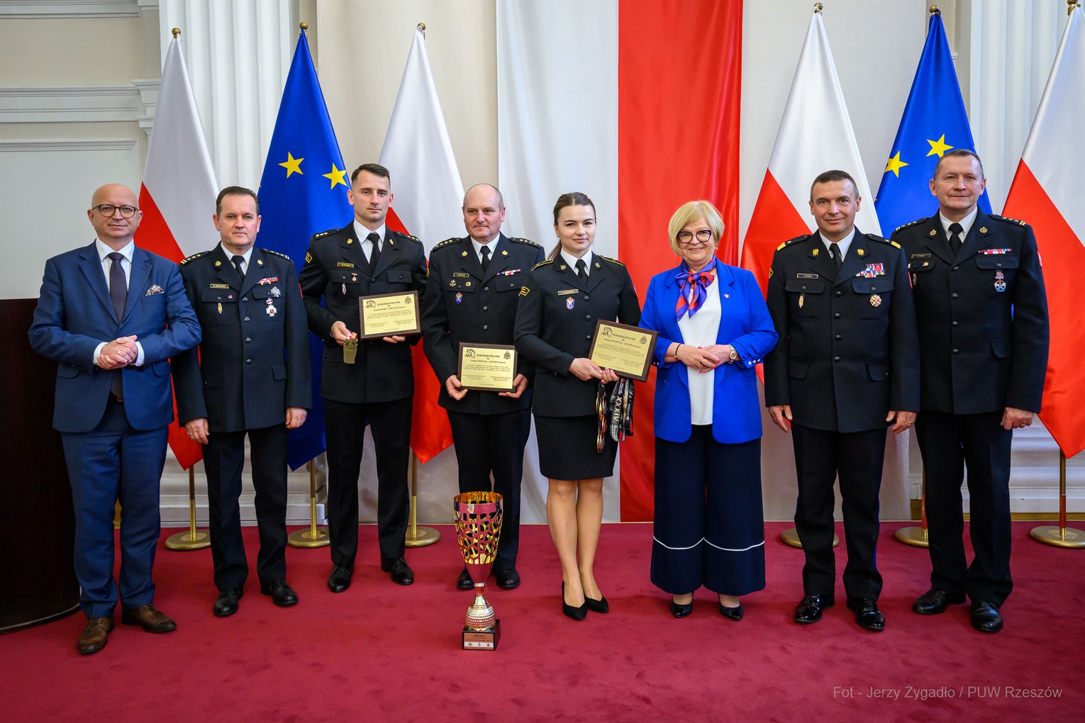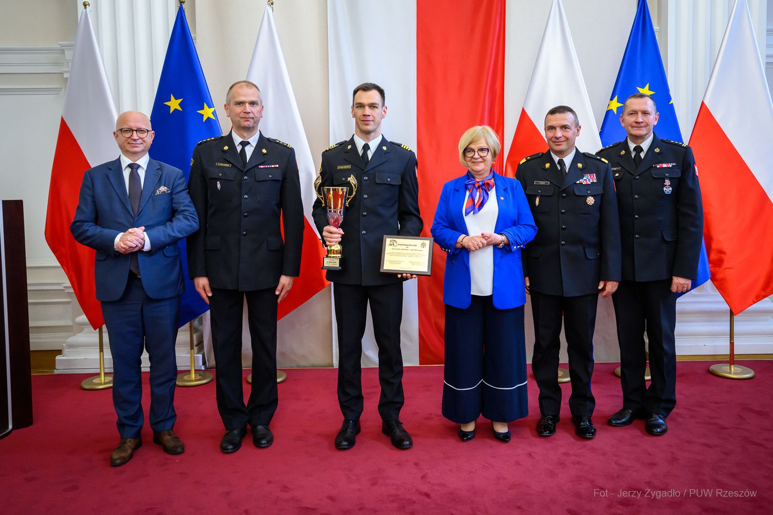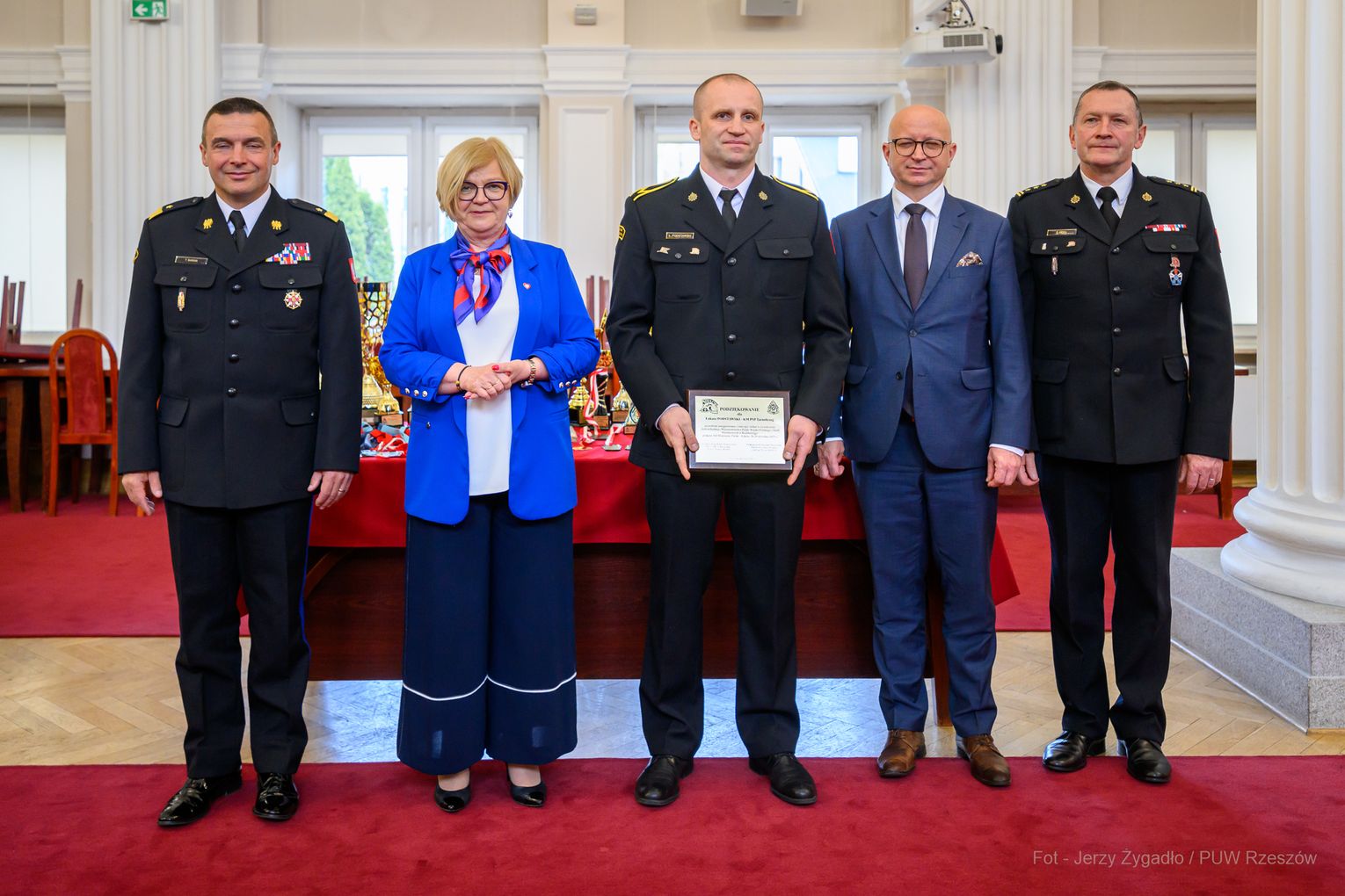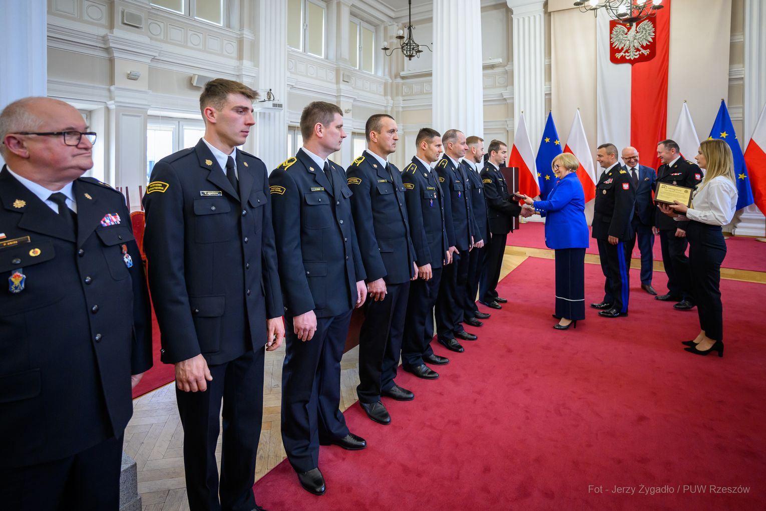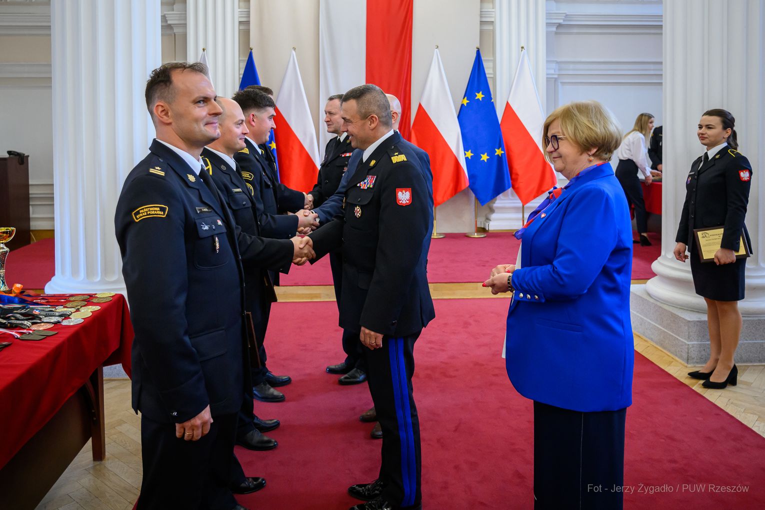 Wojewoda Teresa Kubas-Hul podziękowała strażakom za ich profesjonalizm, odwagę i zaangażowanie, które łączą z sukcesami sportowymi. Nadbryg. Tomasz Baran podkreślił, że osiągnięcia te są efektem pasji i ciężkiej pracy oraz inspiracją dla innych.