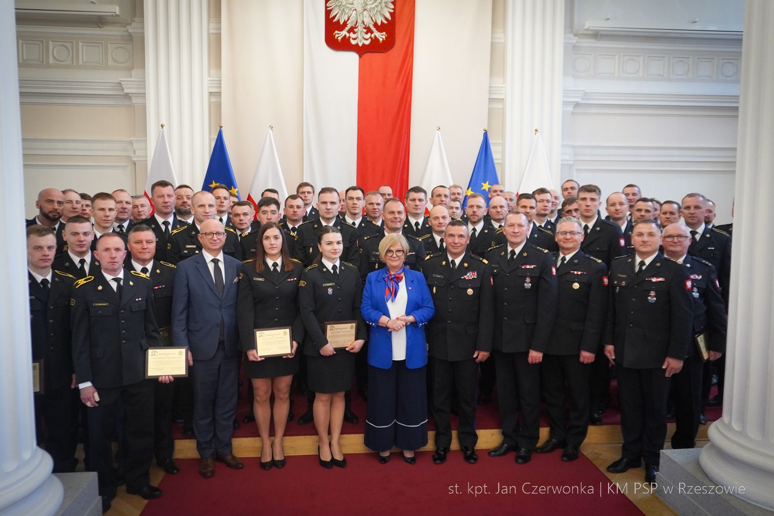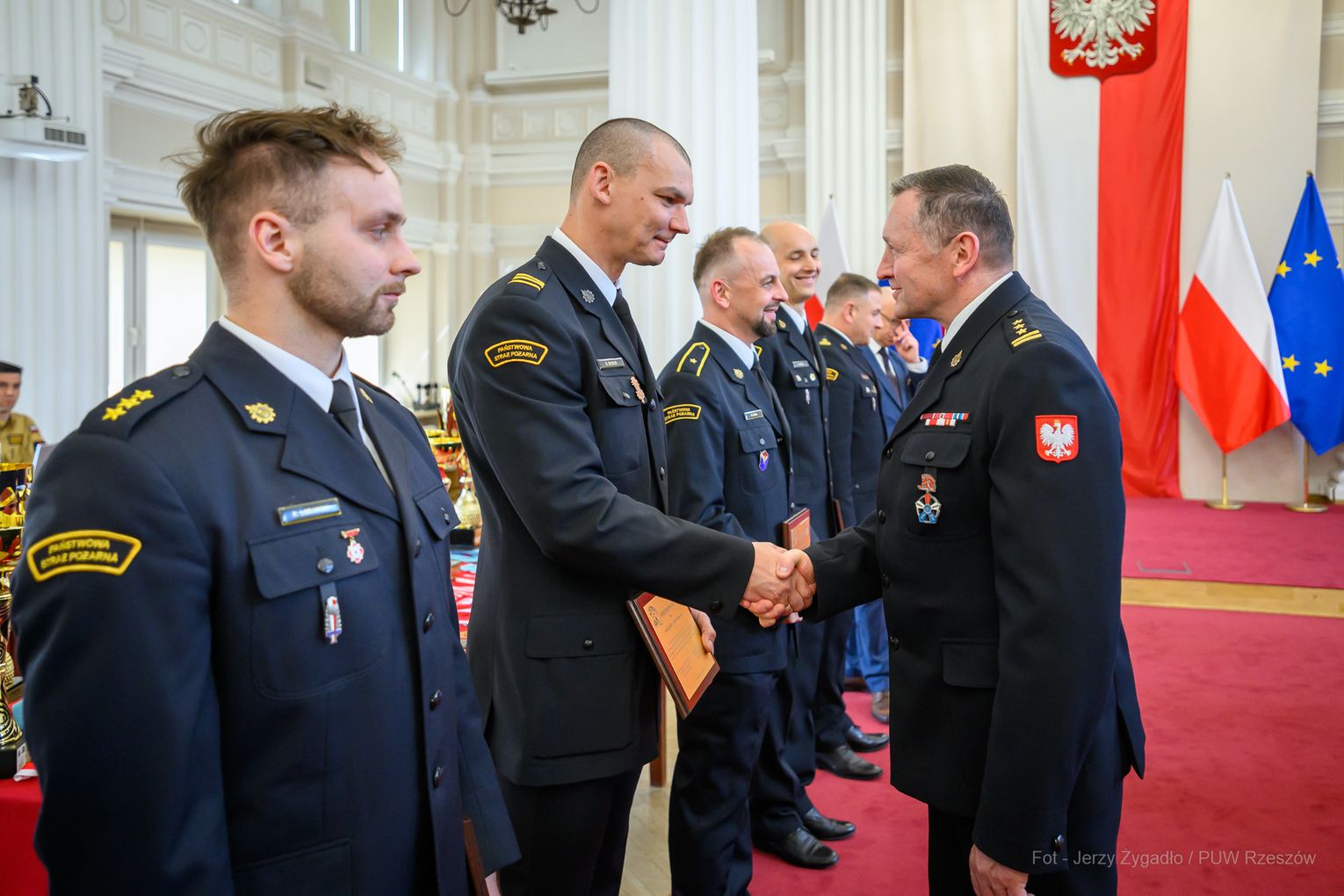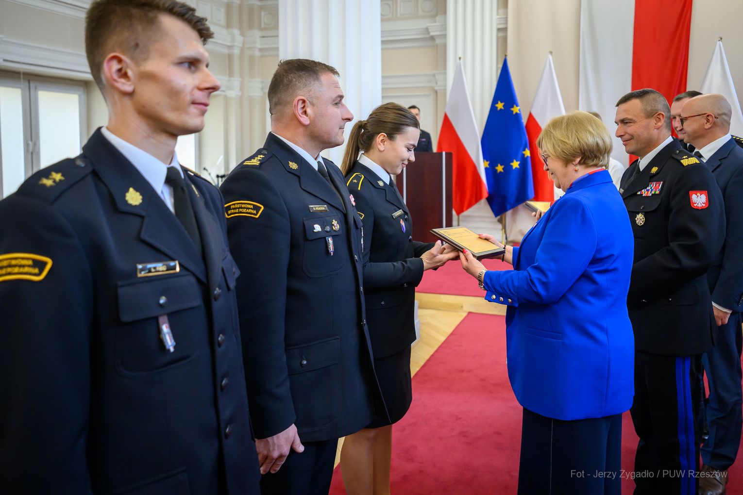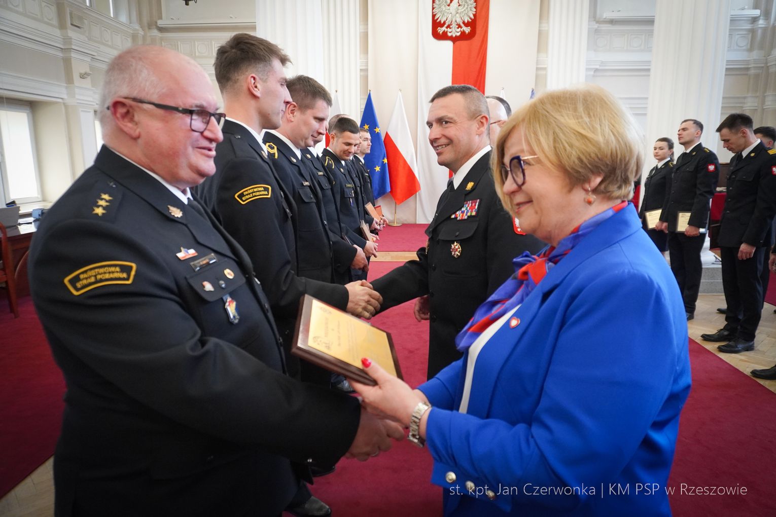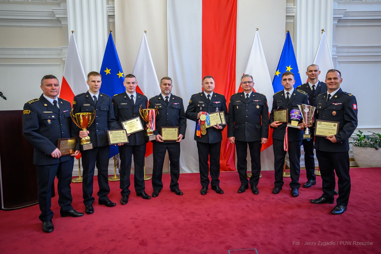 Wojewoda Teresa Kubas-Hul podziękowała strażakom za ich profesjonalizm, odwagę i zaangażowanie, które łączą z sukcesami sportowymi. Nadbryg. Tomasz Baran podkreślił, że osiągnięcia te są efektem pasji i ciężkiej pracy oraz inspiracją dla innych.