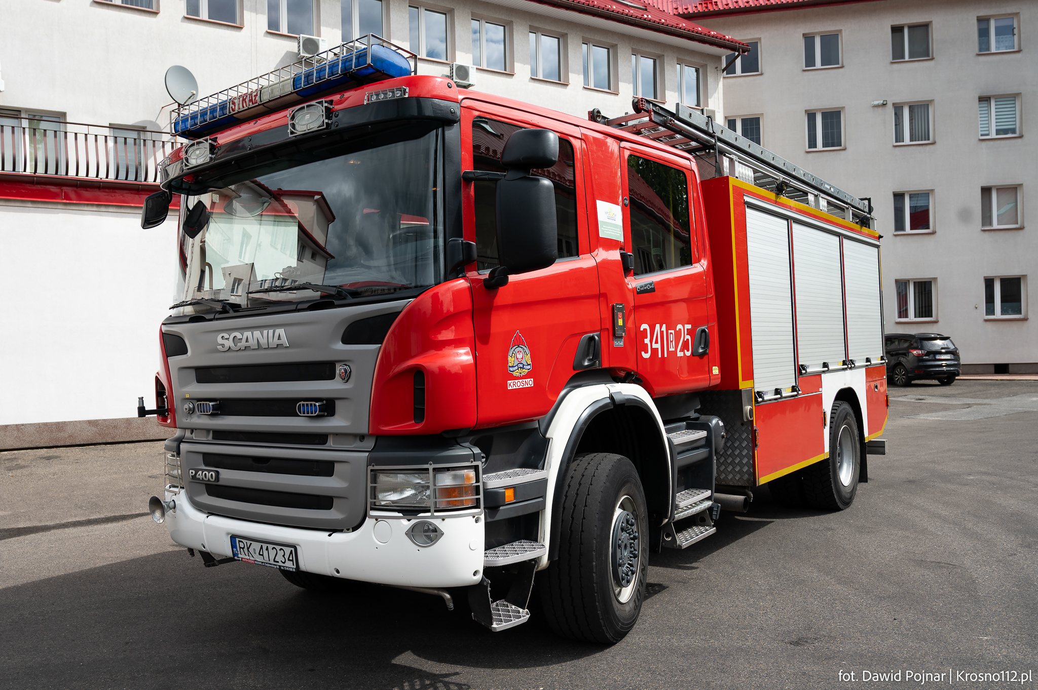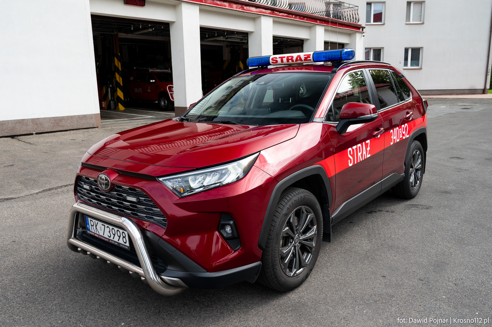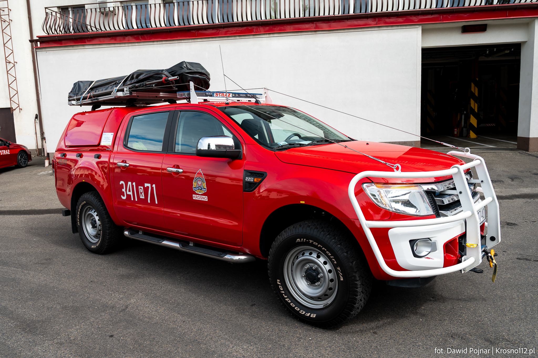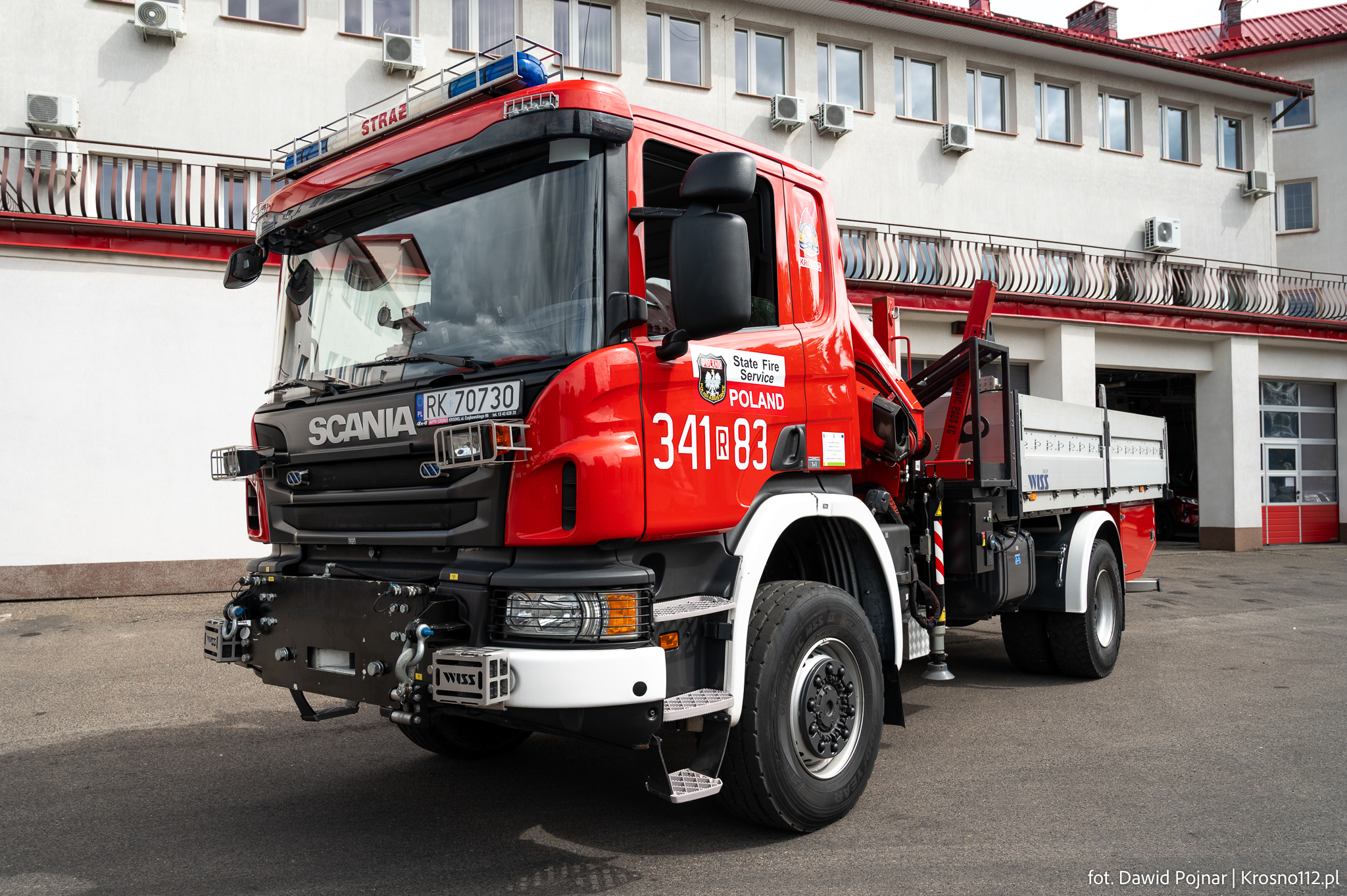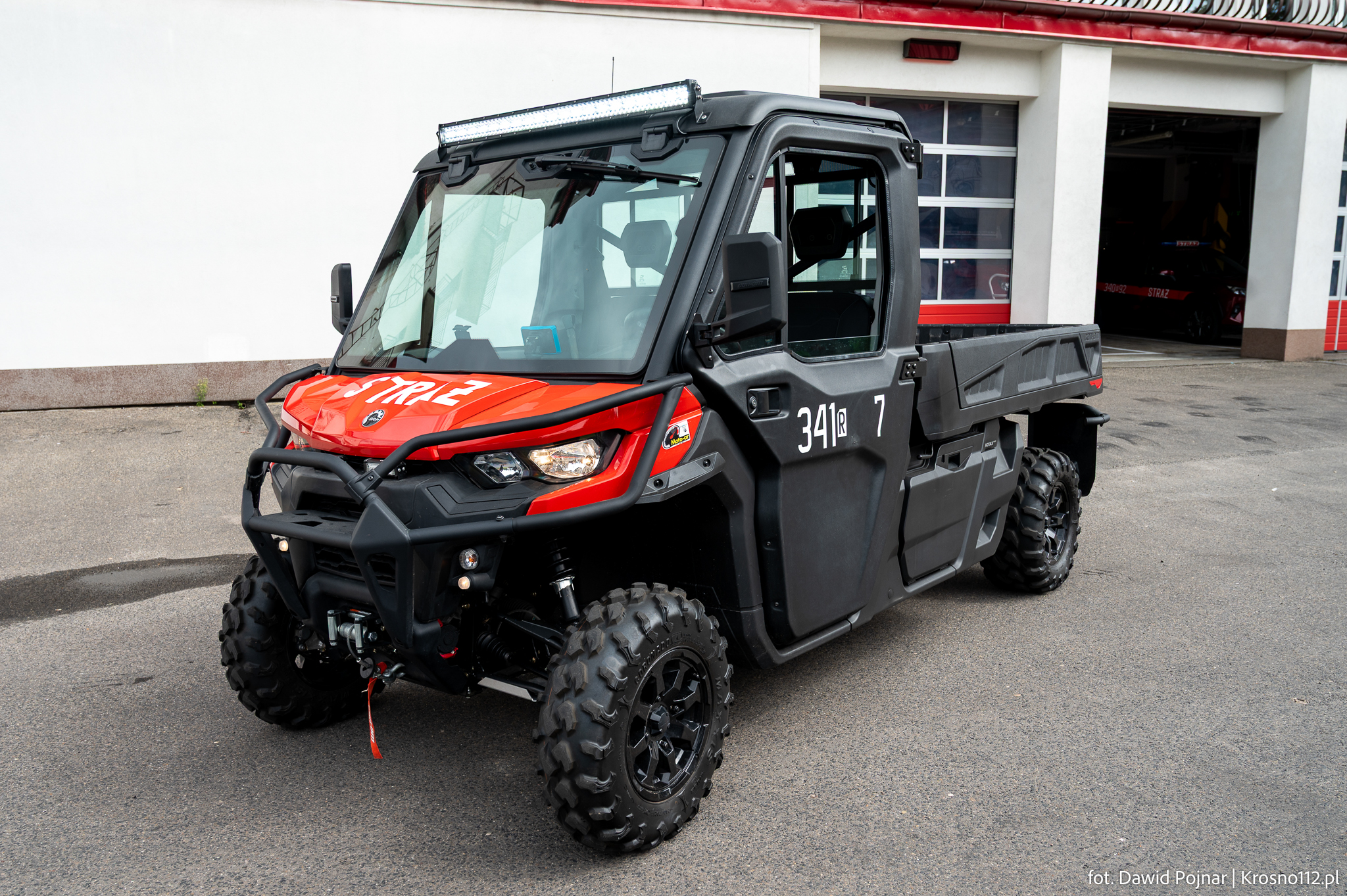 - Wykorzystanie: głównie do odśnieżania placu komendy. Pojazd bierze udział również w akcjach gaśniczych (m.in. pożar marketu budowlanego w Krośnie w lipcu 2024 roku)