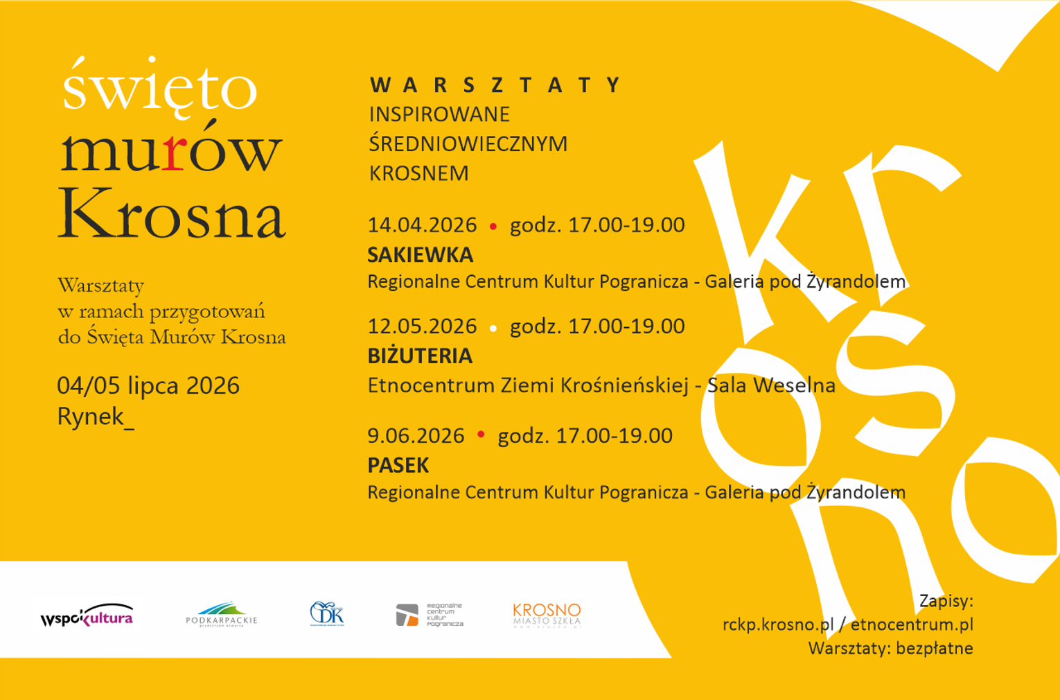 Cykl warsztatów inspirowanych średniowiecznym Krosnem oraz estetyką medieval chic to propozycja dla rodzin, mieszkańców i wszystkich, którzy chcą dotknąć historii poprzez działanie. Spotkania będa się odbywać w Regionalnym Centrum Kultur Pogranicza oraz Etnocentrum Ziemi Krośnieńskiej i stanowią twórcze przygotowanie do Święta Murów Krosna. Każde z nich prowadzi uczestników przez inne aspekty średniowiecznej estetyki i codzienności, łącząc inspiracje dawnym rzemiosłem z indywidualną interpretacją. To przestrzeń, w której można eksperymentować, przynosić własne materiały i nadawać tworzonym przedmiotom osobisty charakter.